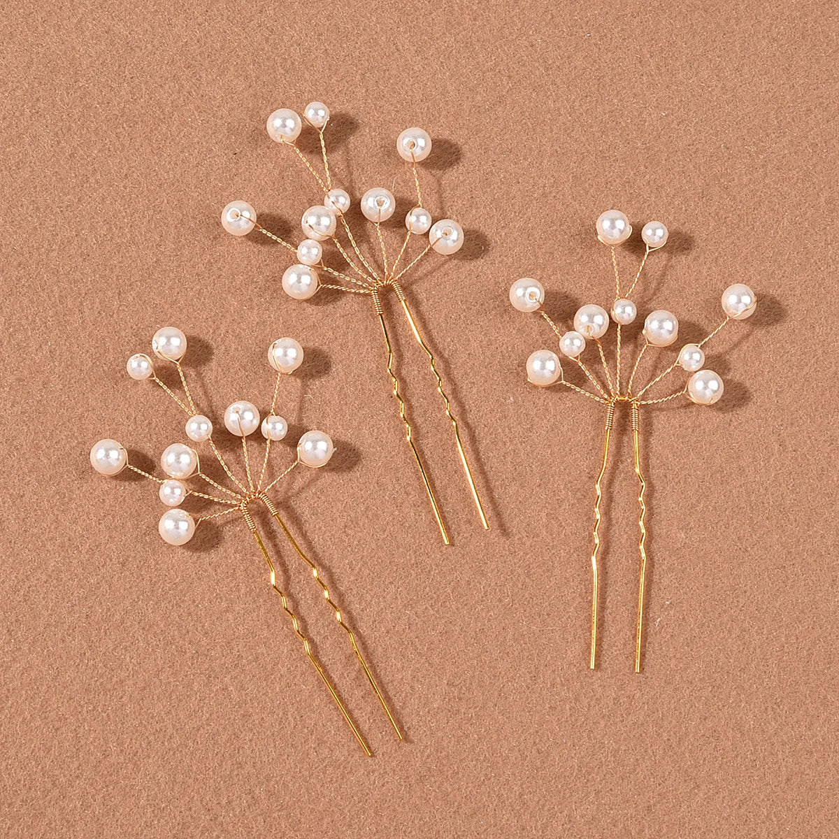 plus 3PCS Bridal Wedding Hair Accessories Hair Pins Forks for Women Pearl Hairpins Princess Headpiece Party Jewelry Gift