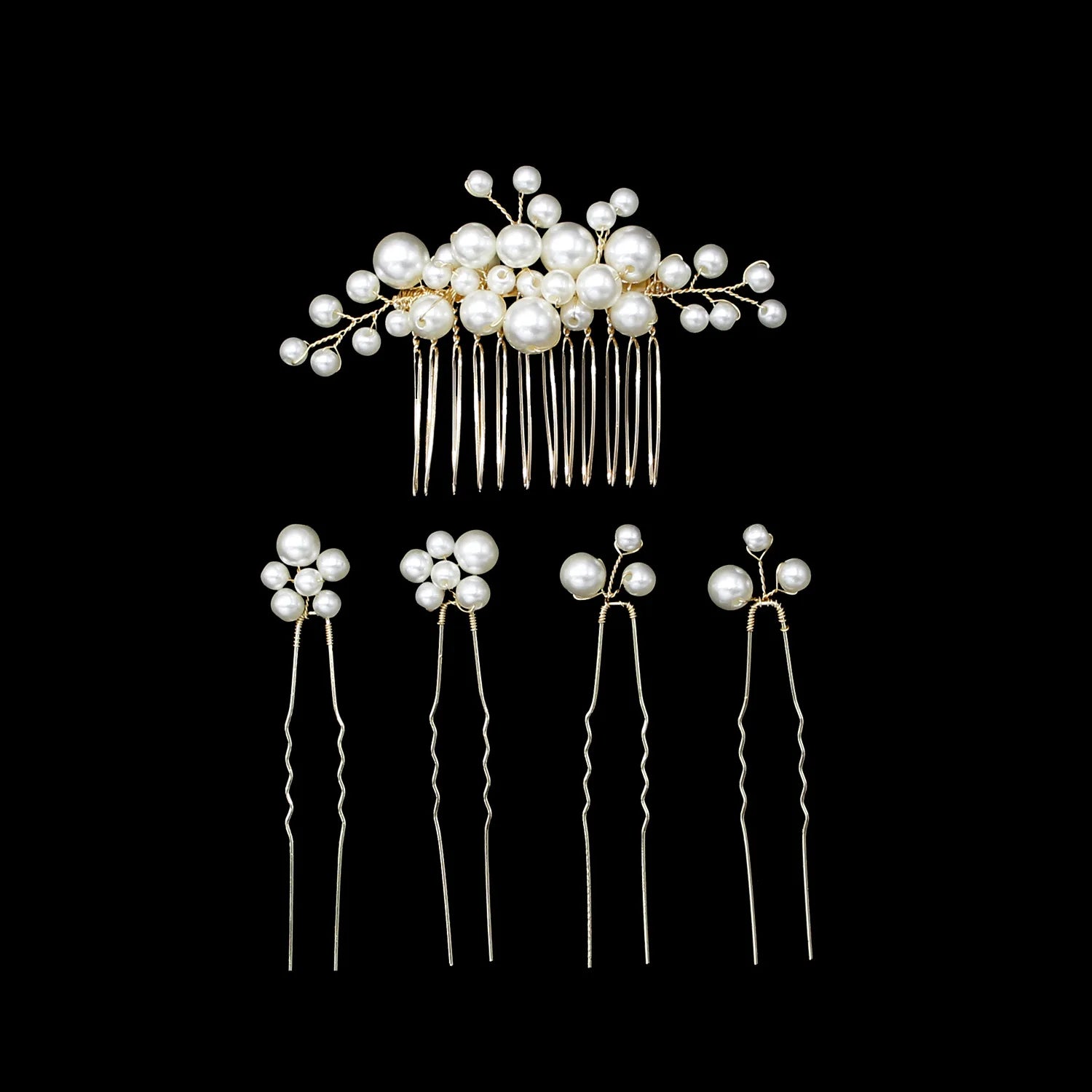 plus 5Pcs Crystal Peal Pearl Hair Comb Headband Hairpins Hairbands wedding jewelry headwear Bridal Hair Accessories