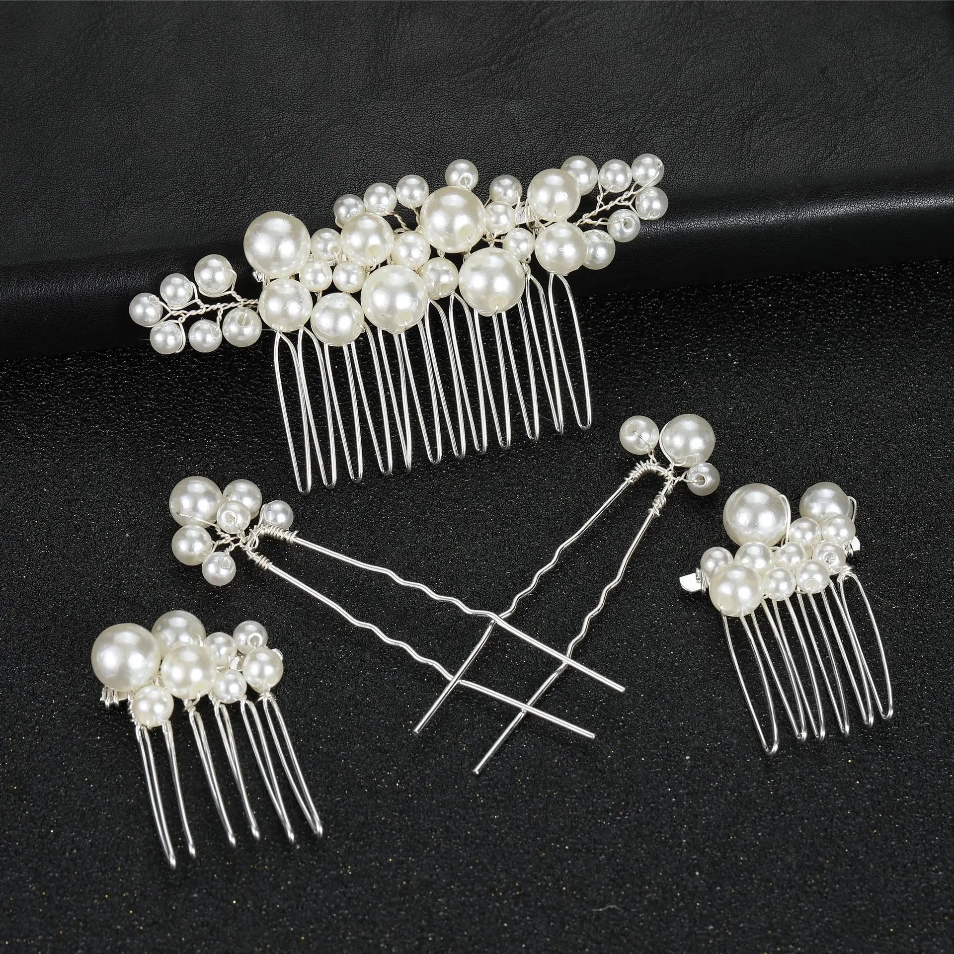 5Pcs Crystal Peal Pearl Hair Comb Headband Hairpins Hairbands wedding jewelry headwear Bridal Hair Accessories