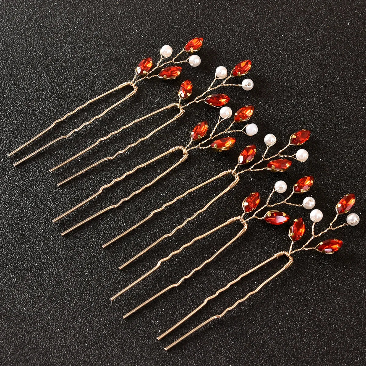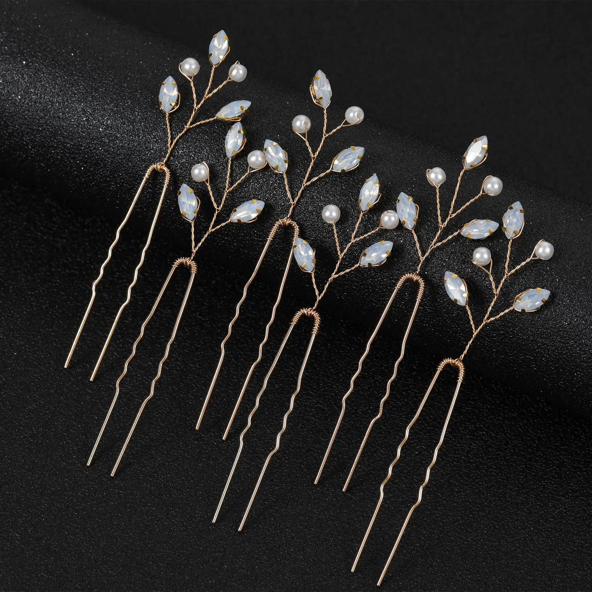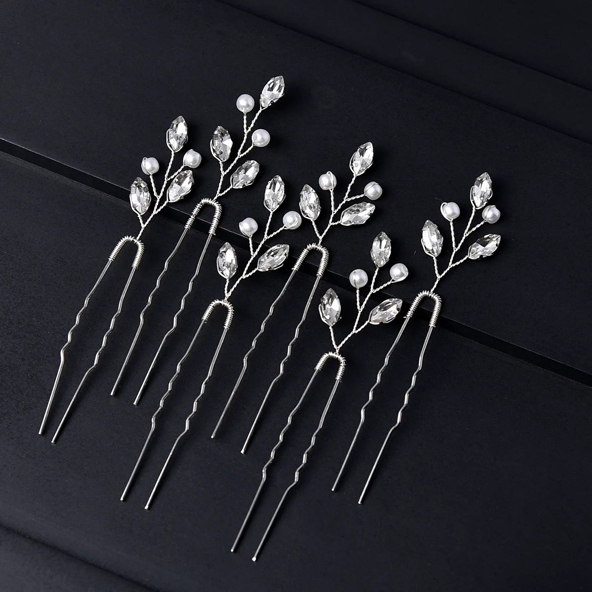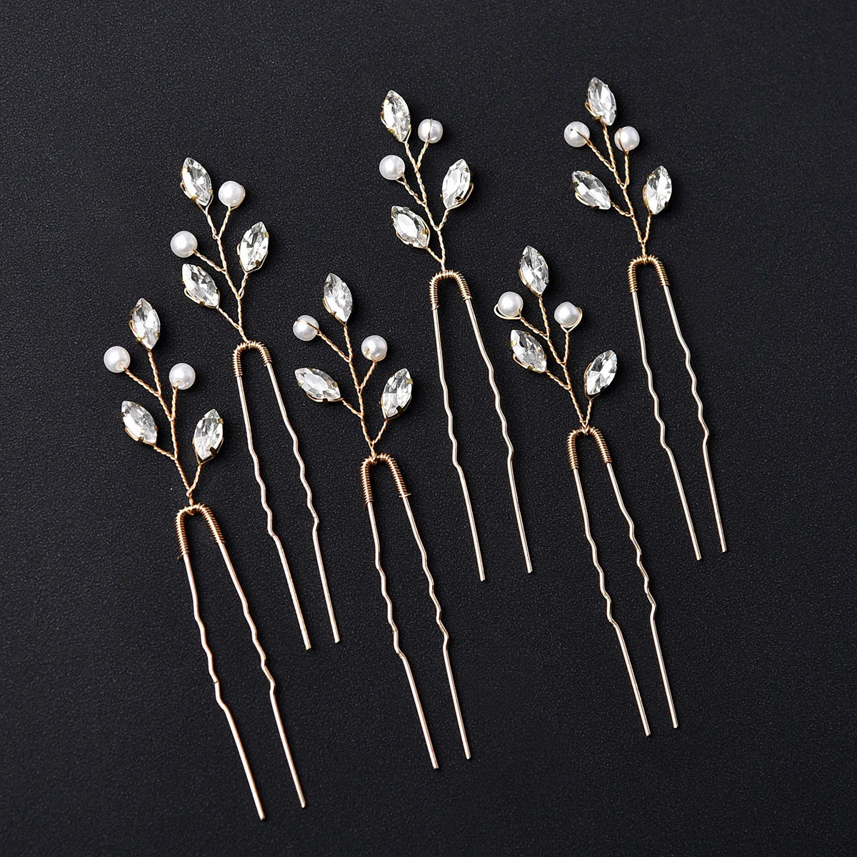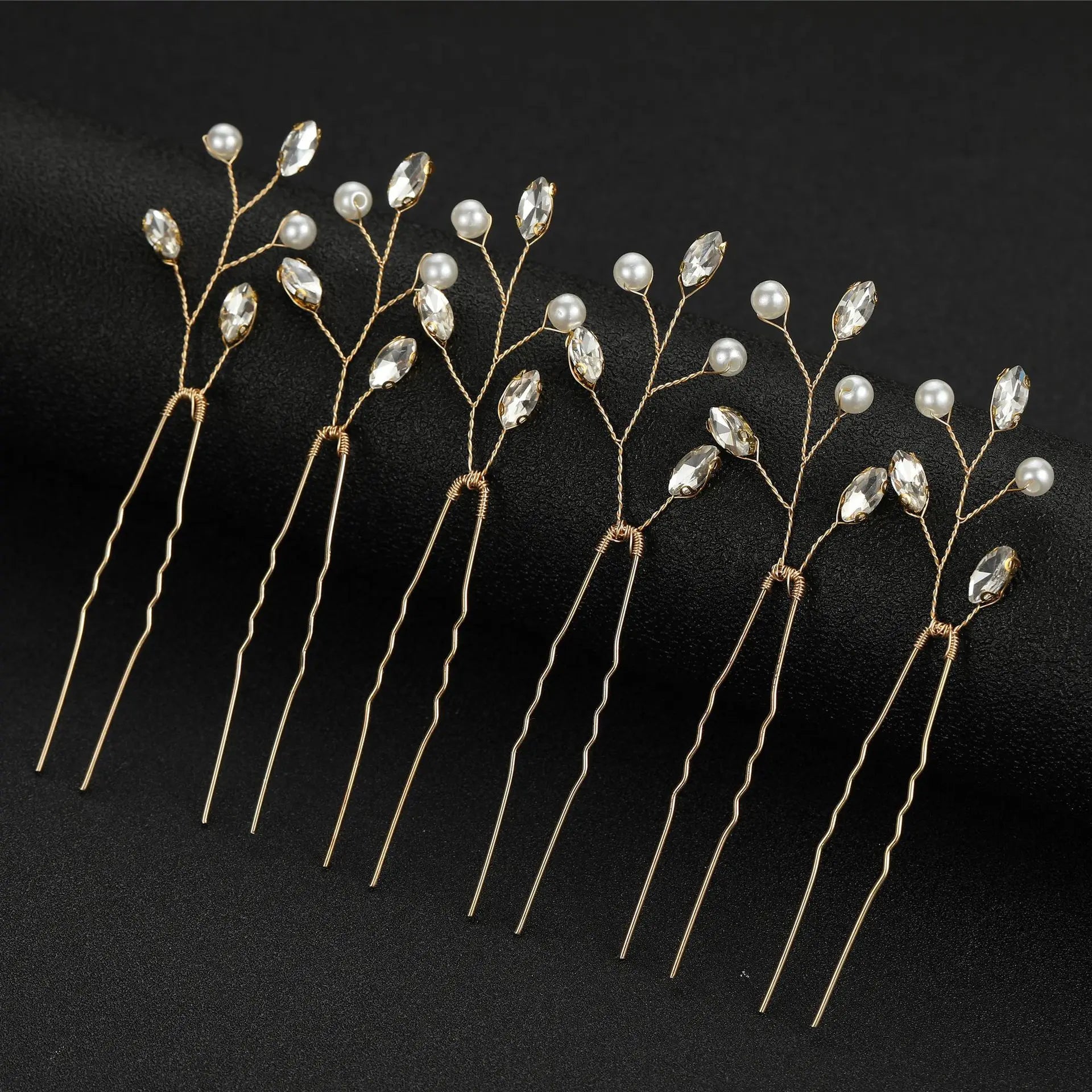 plus 6Pcs Ladies Pearls Diamante Leaves Hair Clips Fashion Wedding Bridal Headpieces Luxury Jewelry Hair Accessories