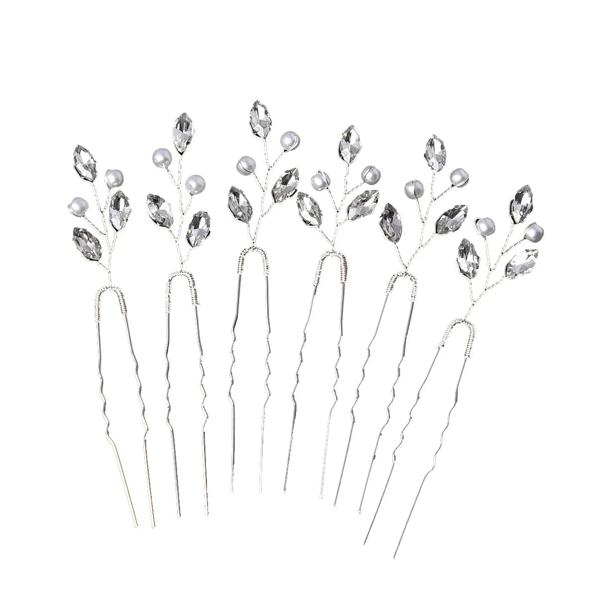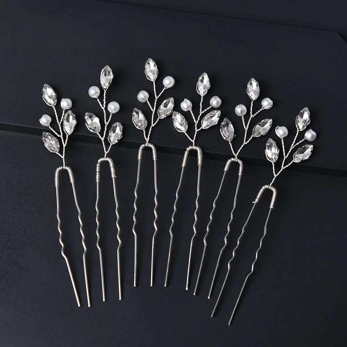 6Pcs Ladies Pearls Diamante Leaves Hair Clips Fashion Wedding Bridal Headpieces Luxury Jewelry Hair Accessories