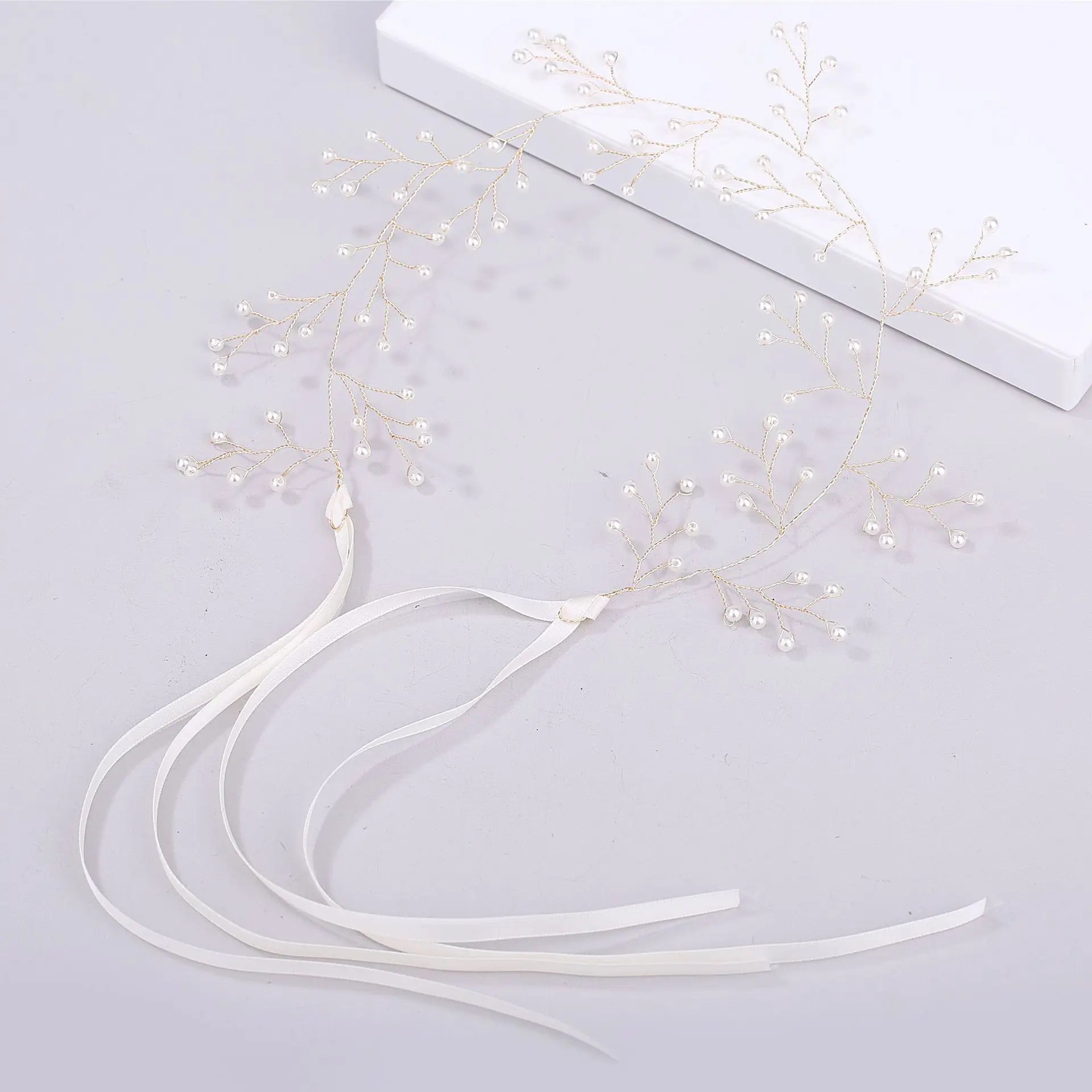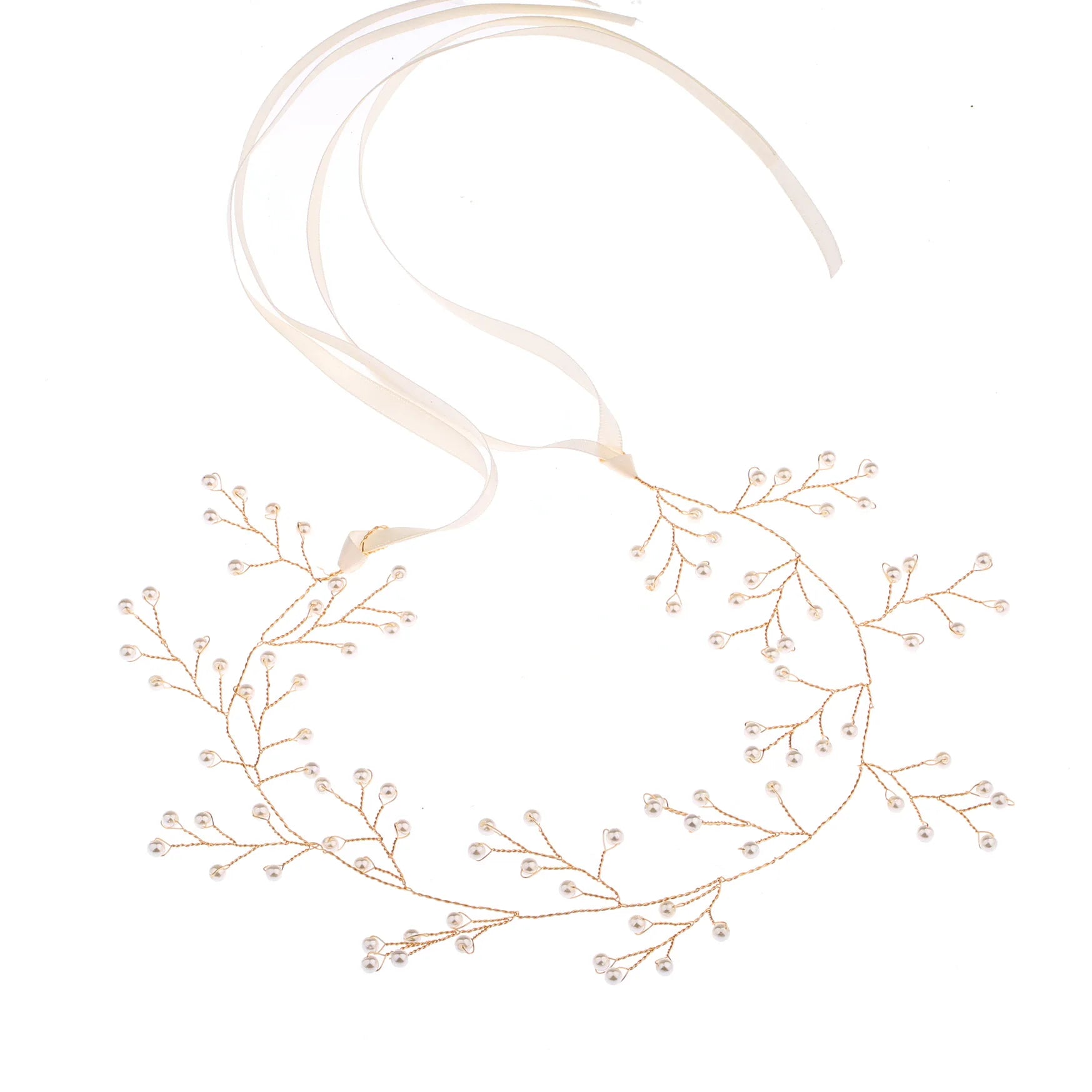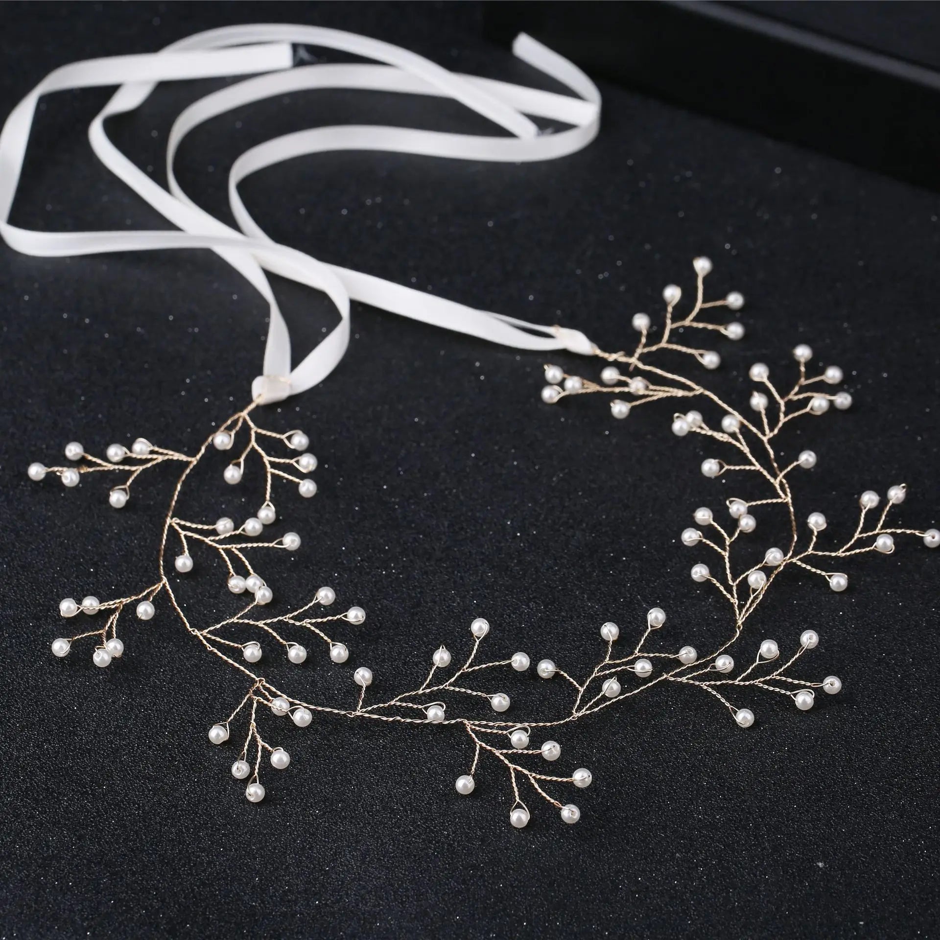 minus Crystal Bridal Hairband Golden Pearl Rhinestone Leaf Women Head wear Wedding Headpiece Jewelry Hair Accessories