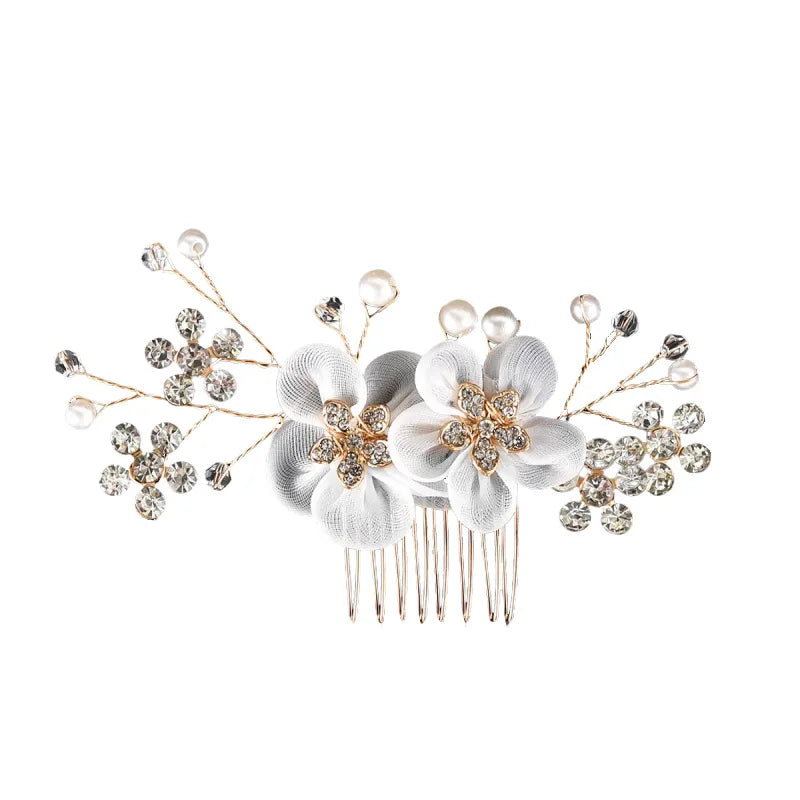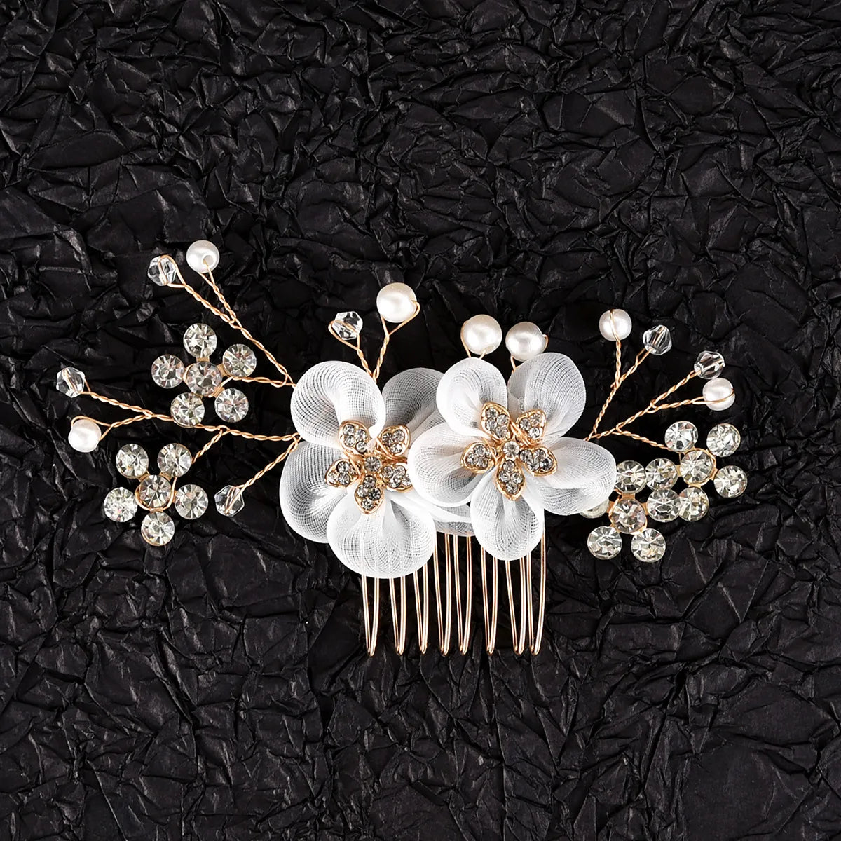 Crystal Pearl Flower Hairbrush for Women Bride Jewelry Wedding Accessories Rhinestone Party Hairpin Headpiece
