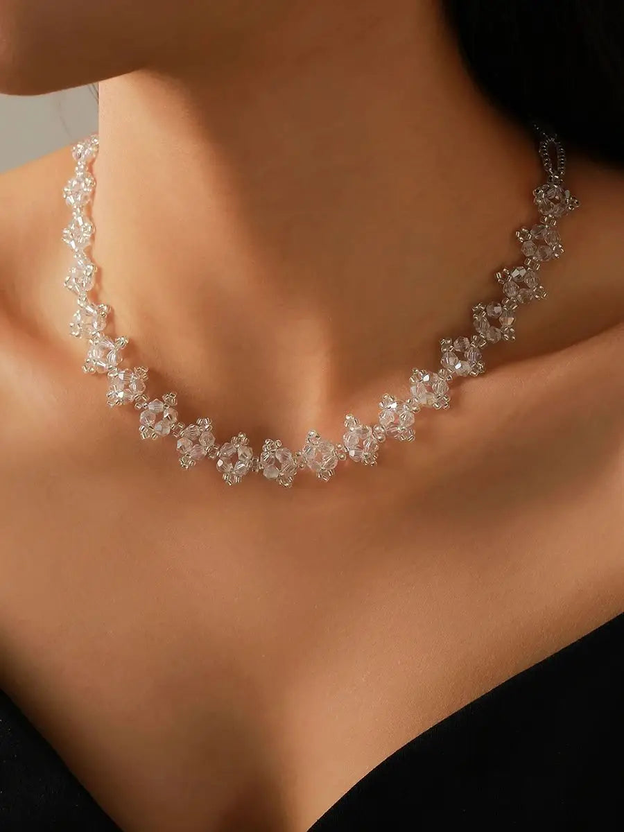 plus Elegant Pearl Simple Women Necklace Minimalism Beads Choker Crystal Necklace For Girls Jewelry Trend Wedding Nake Accessories