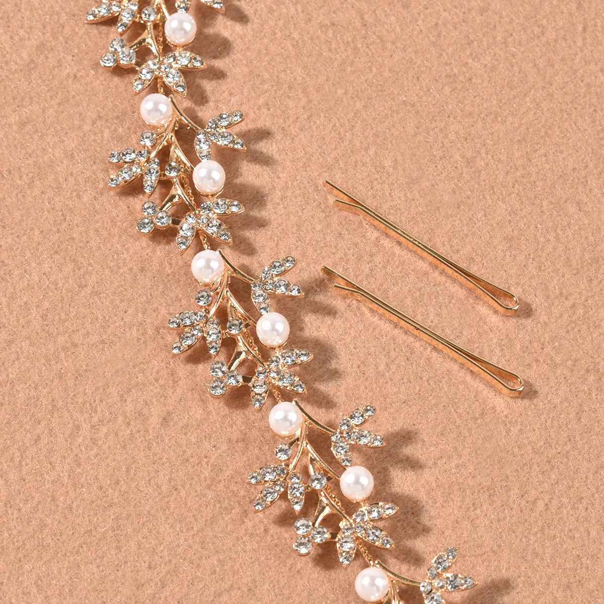 Product Name: Fashion Bridal Hairband Sliver Rhinestone Pearl Women Hair Accessories Flower and Leaf Aolly Jewelry Hair Headpiece For Wedding