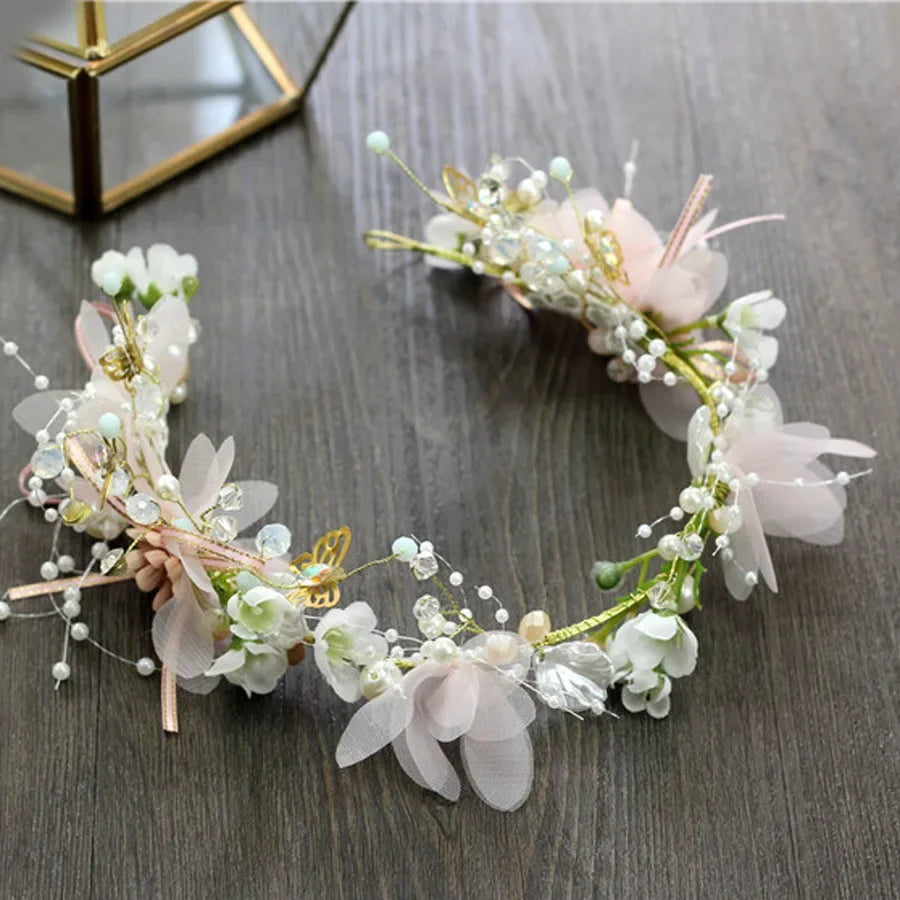 Fashion Bridal Rhinestone Pearl Hairband HeadWear Flower Wreath Bride Garland Head Hoop Headbands Hair Jewelry Children Gifts