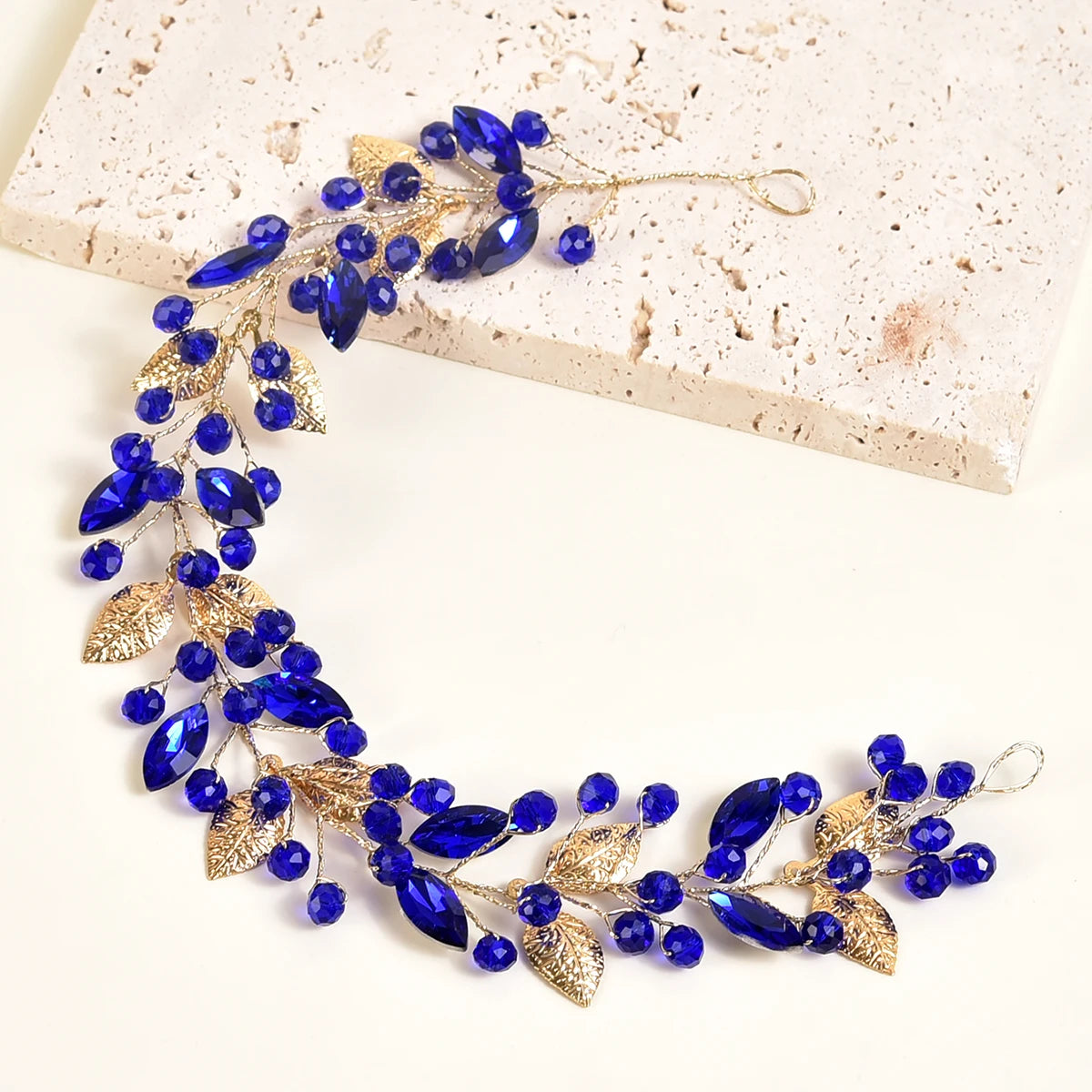 plus Fashion Crystal Bridal Hairband Red Pearl Rhinestone Leaf Women Head wear Wedding Headpiece Jewelry Hair Accessories