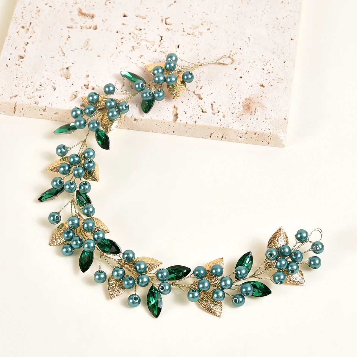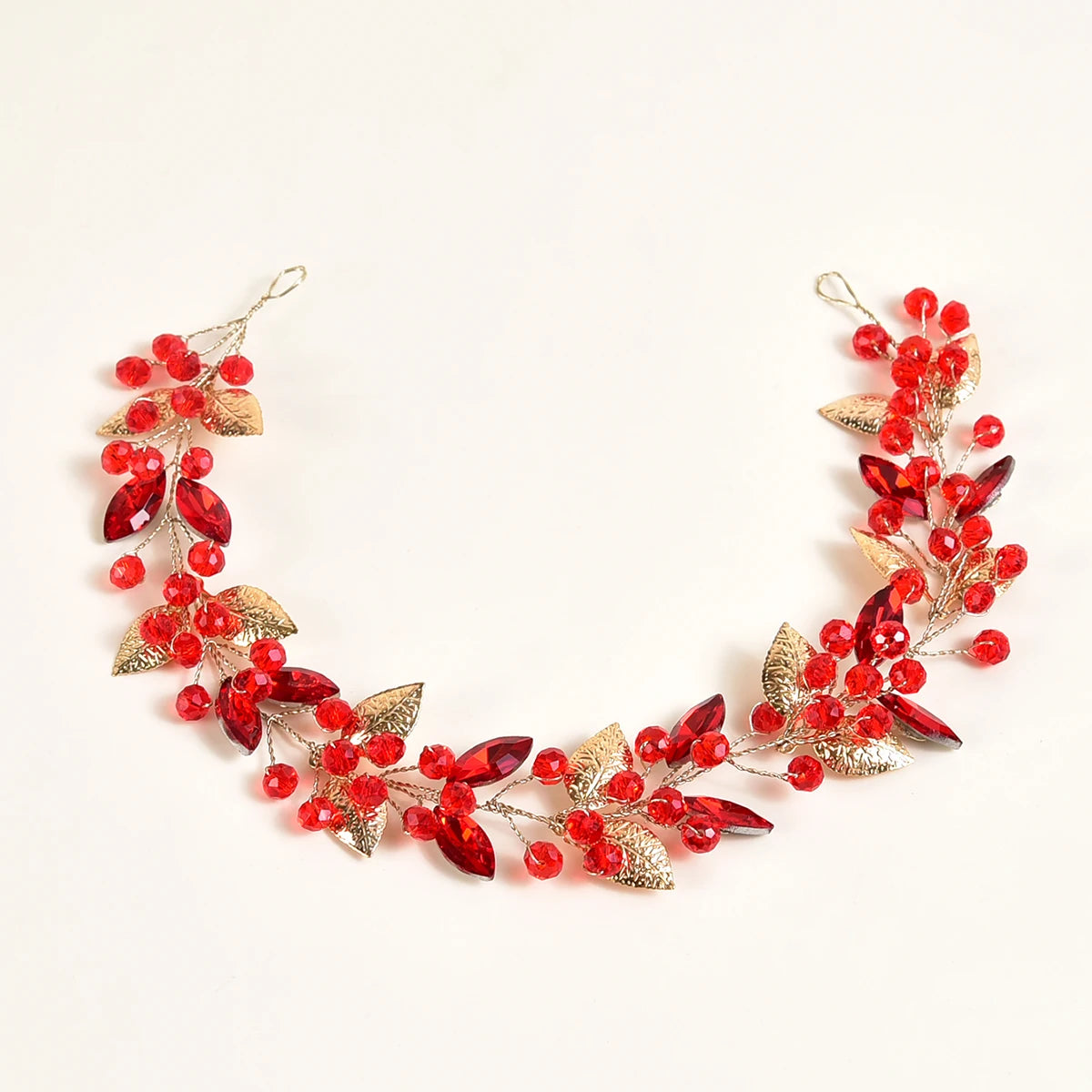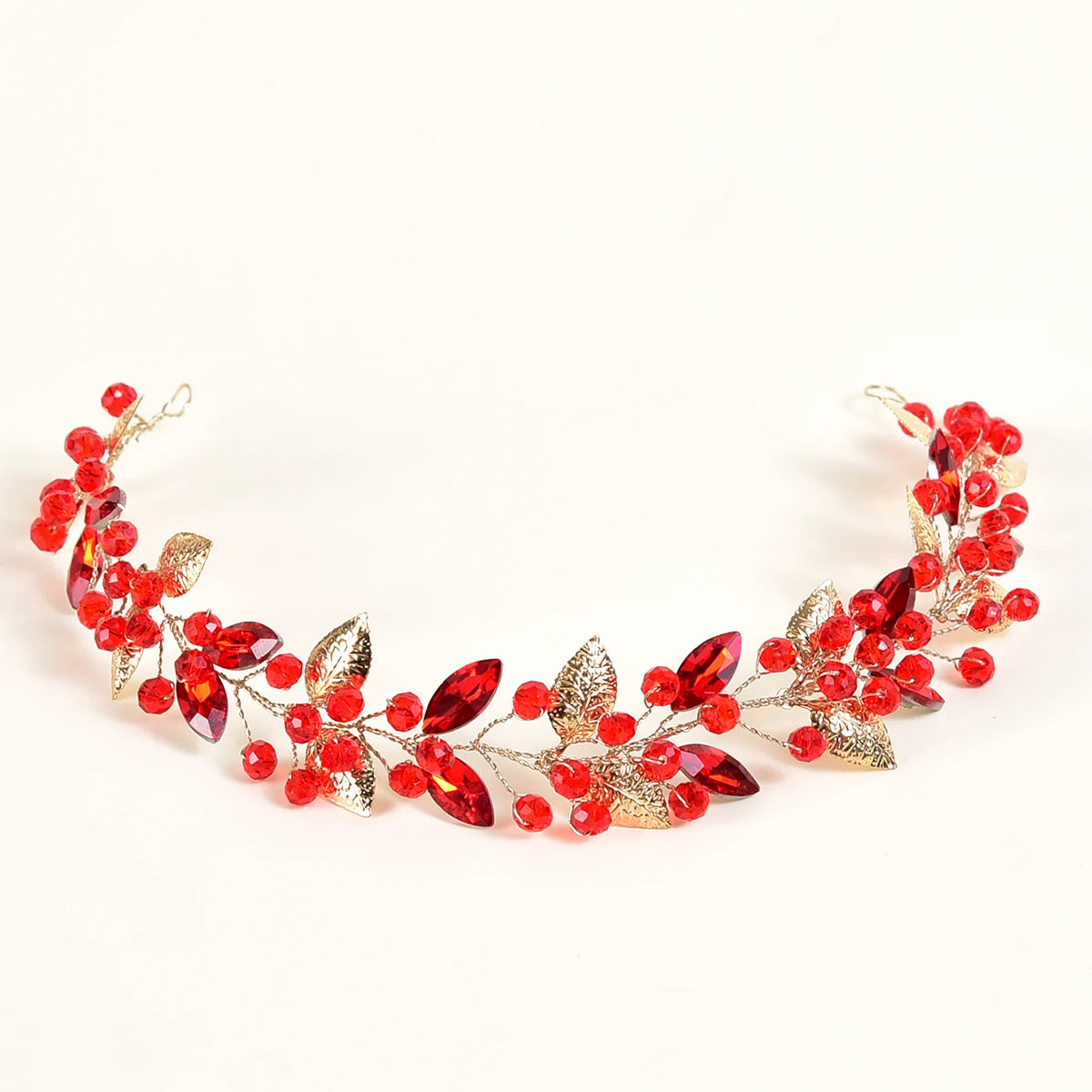 Fashion Crystal Bridal Hairband Red Pearl Rhinestone Leaf Women Head wear Wedding Headpiece Jewelry Hair Accessories