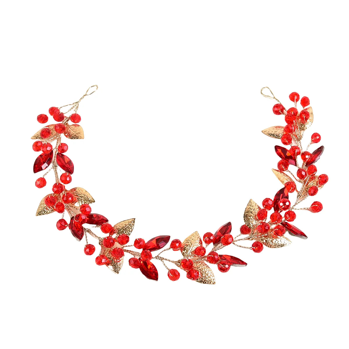 minus Fashion Crystal Bridal Hairband Red Pearl Rhinestone Leaf Women Head wear Wedding Headpiece Jewelry Hair Accessories