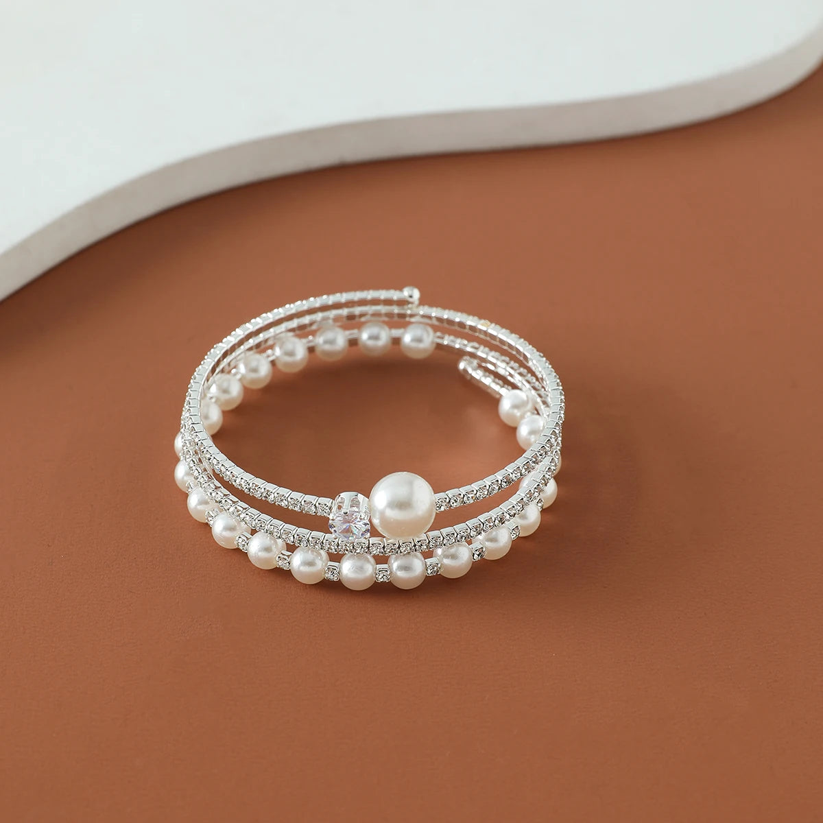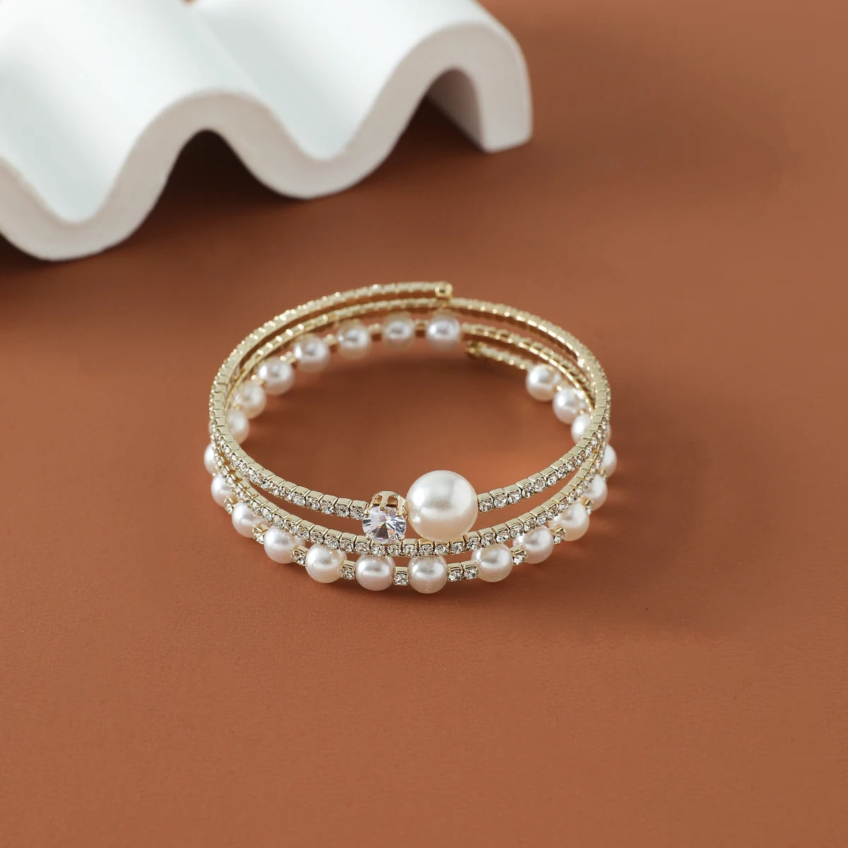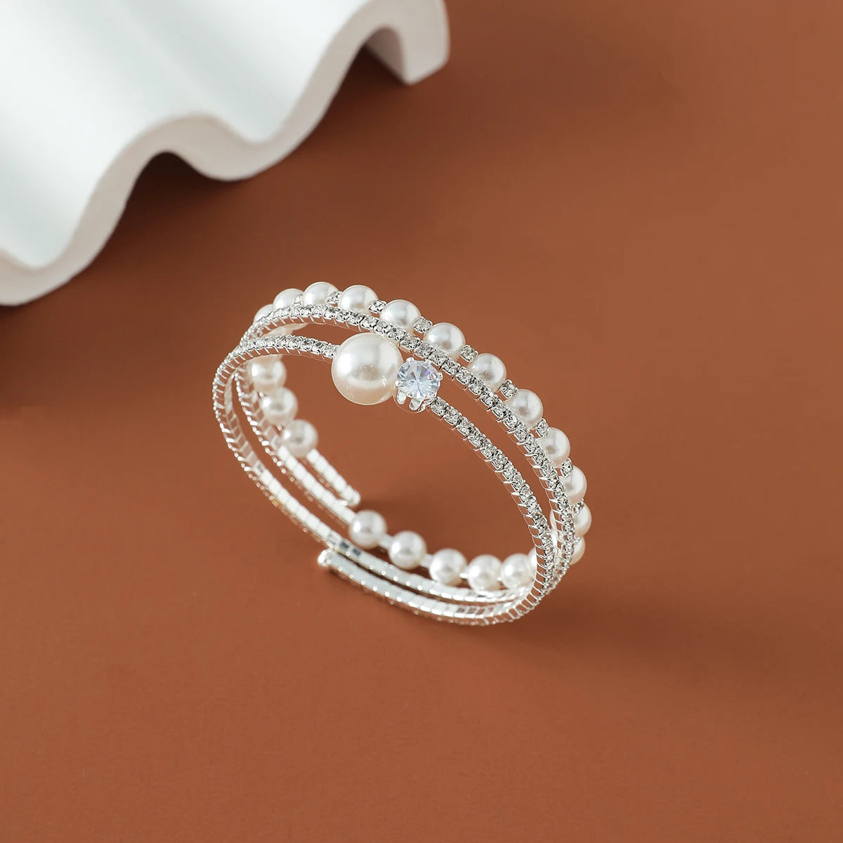 plus Luxury Bridal Cuff Bracelet 3 Row Rhinestone Pearl Bracelet For Women Wedding Party Jewelry Hand Accessories Gifts For Girls
