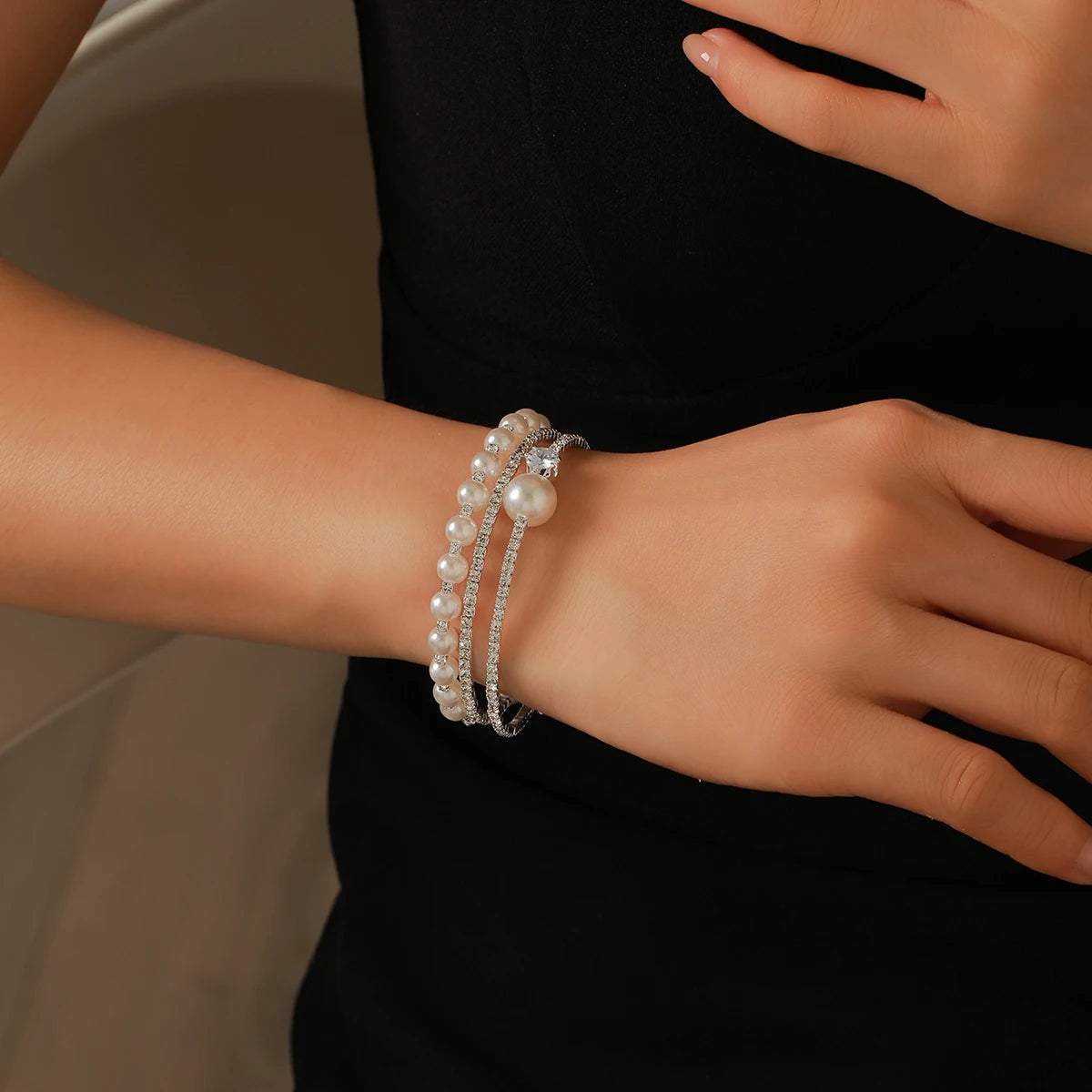 minus Luxury Bridal Cuff Bracelet 3 Row Rhinestone Pearl Bracelet For Women Wedding Party Jewelry Hand Accessories Gifts For Girls
