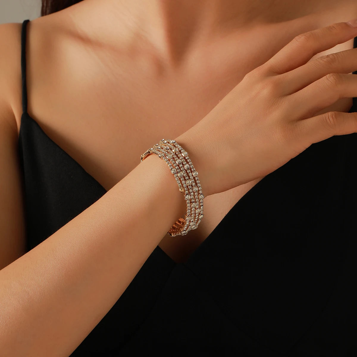 minus Luxury Bridal Cuff Bracelet 4 Row Rhinestone Pearl Bracelet For Women Wedding Party Jewelry Hand Accessories Gifts For Girls