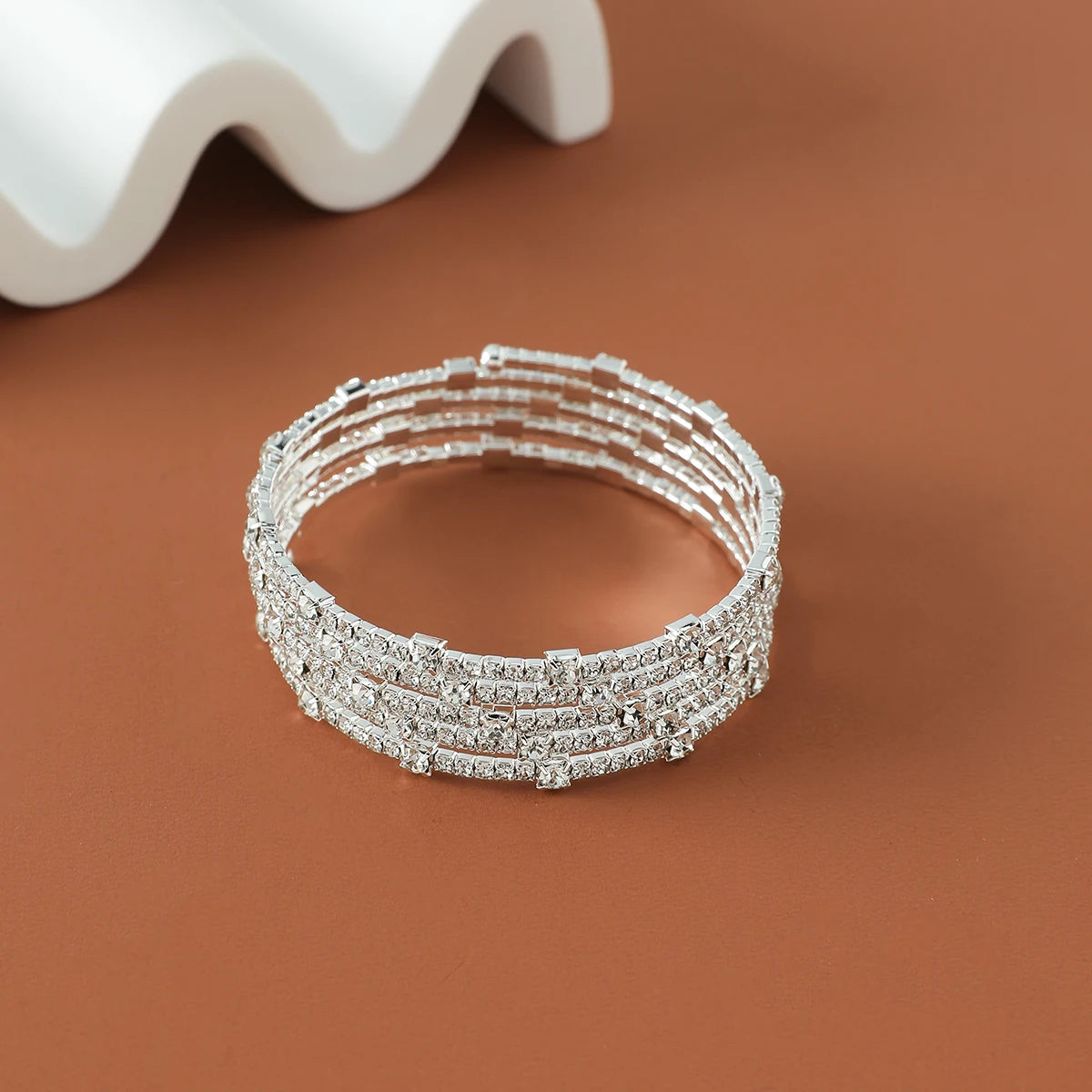 plus Luxury Bridal Cuff Bracelet 4 Row Rhinestone Pearl Bracelet For Women Wedding Party Jewelry Hand Accessories Gifts For Girls