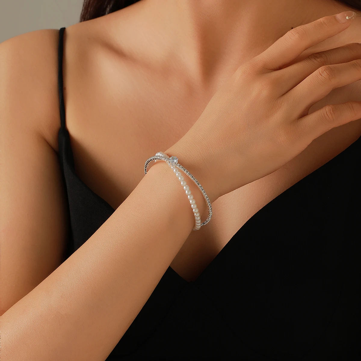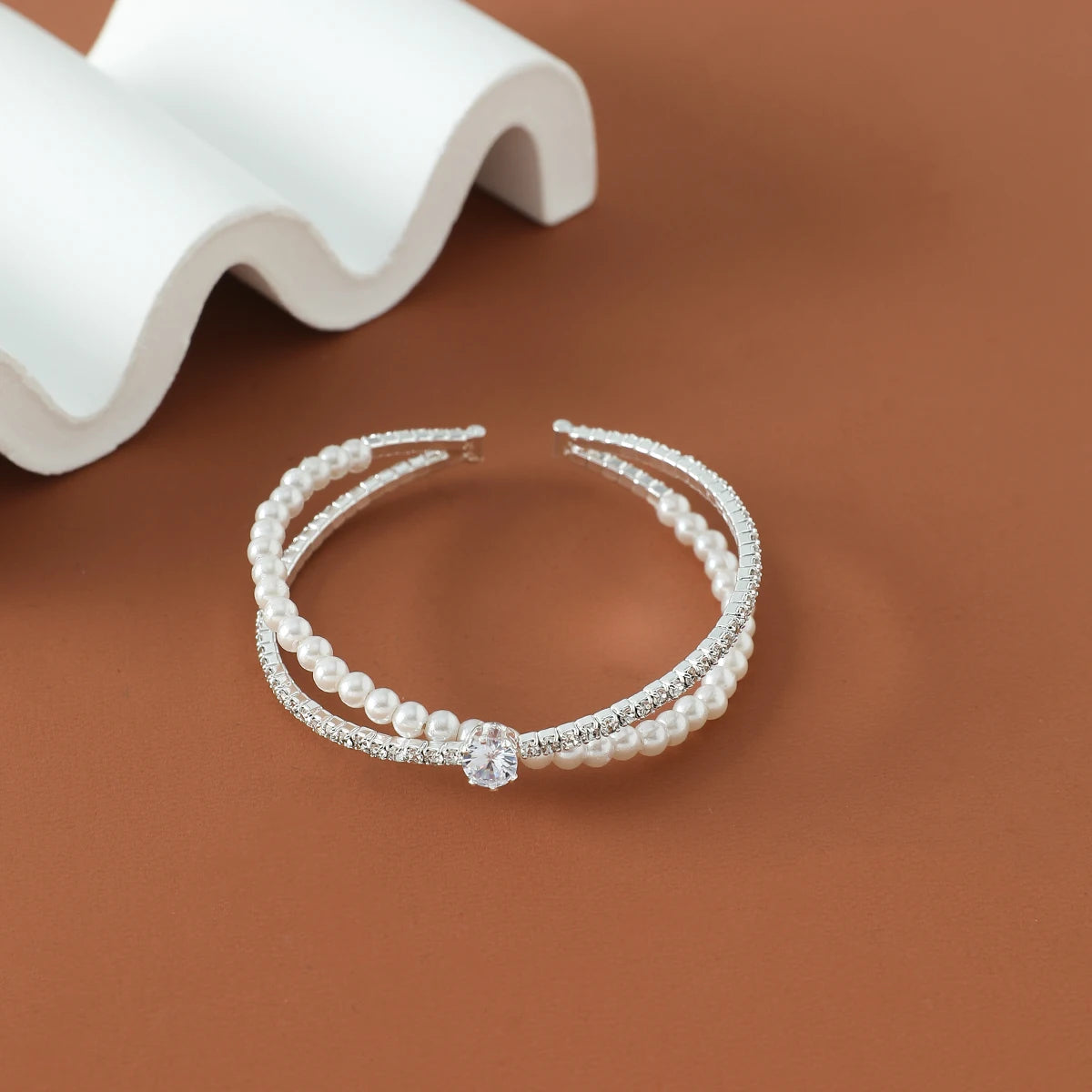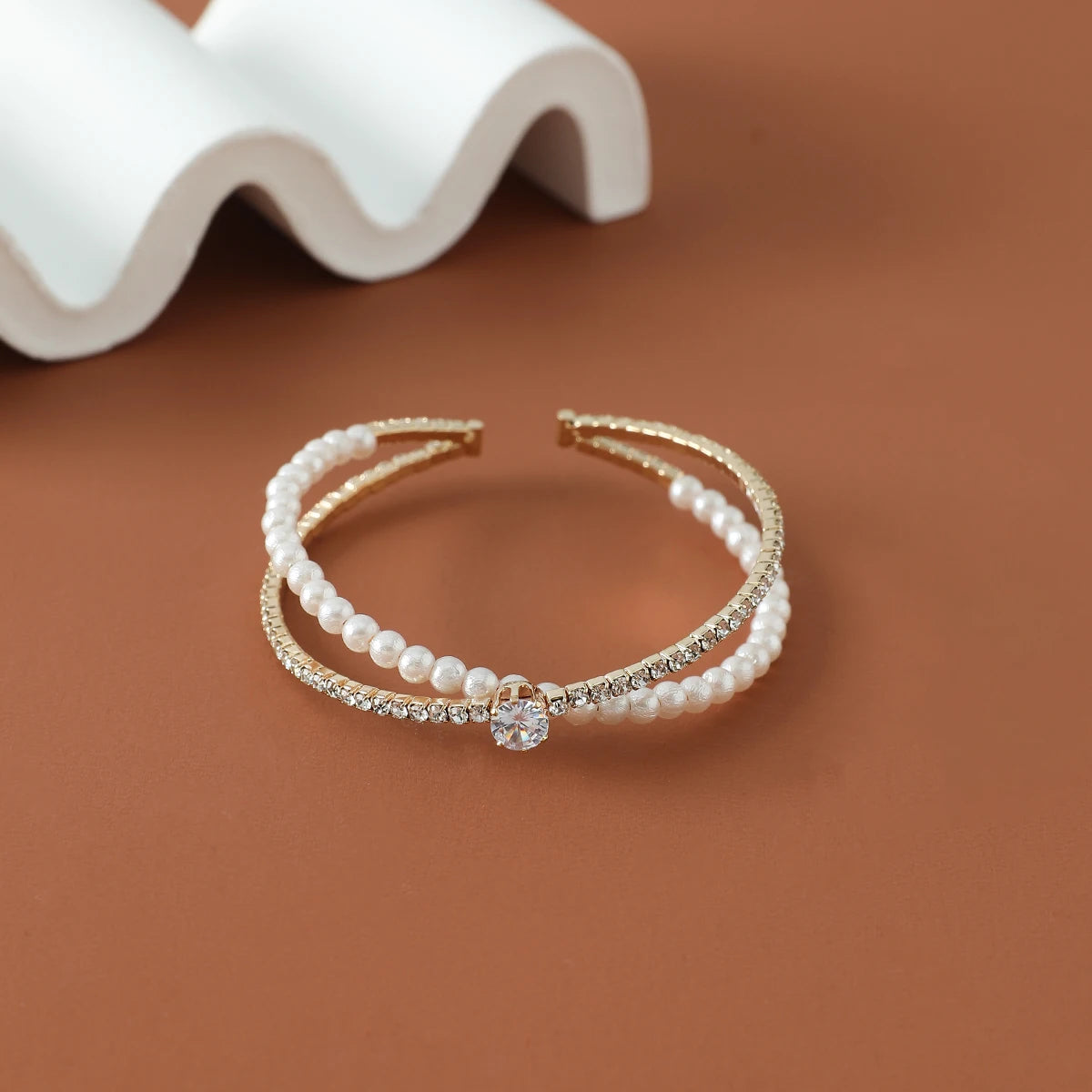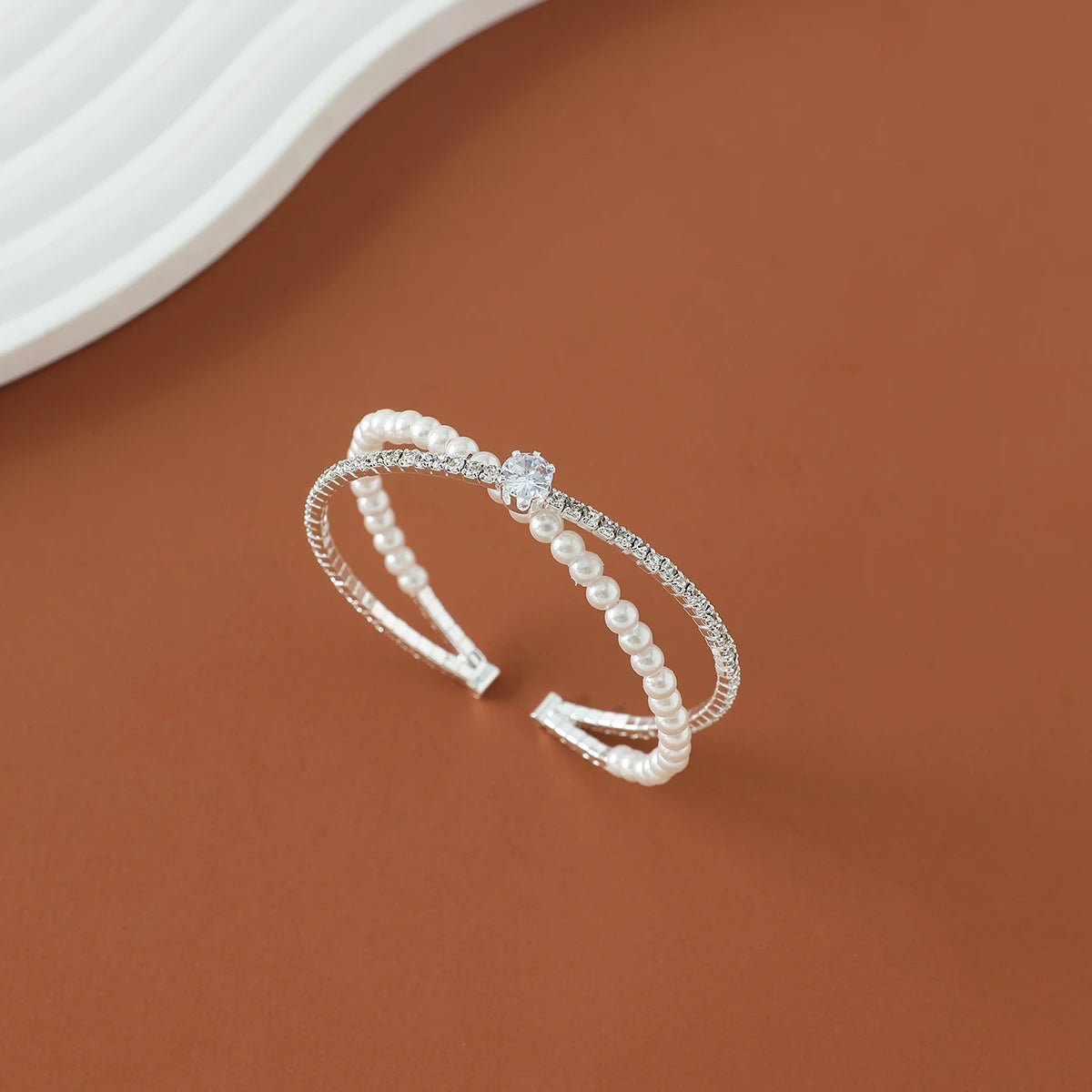 minus Luxury Bridal Cuff Bracelet X Shape Rhinestone Pearl Bracelet For Women Wedding Party Jewelry Hand Accessories Gifts For Girls