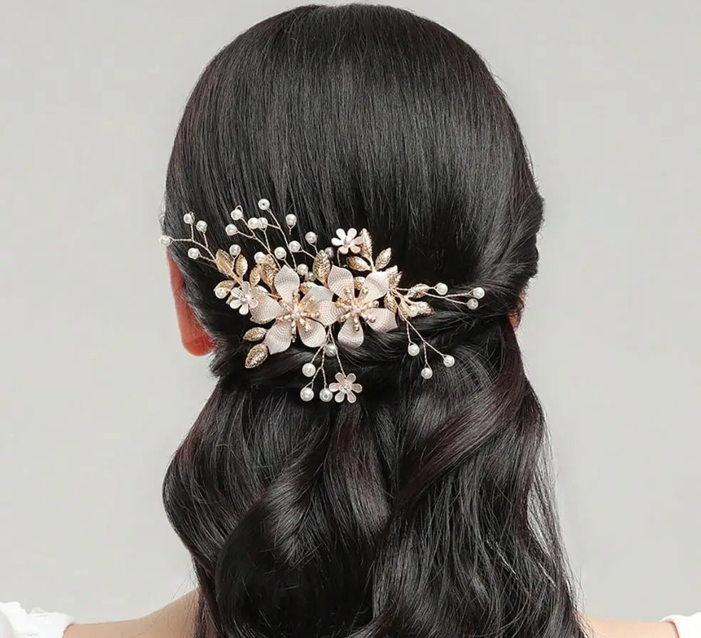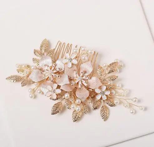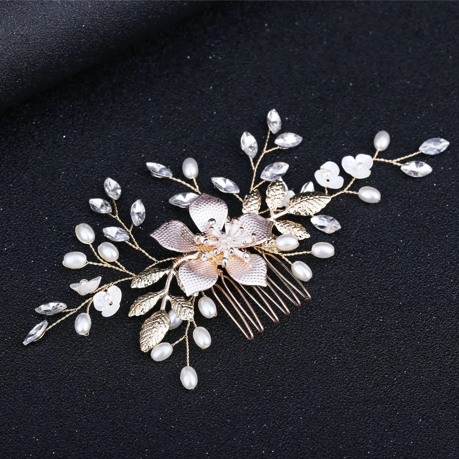 Luxury Bride Pearl Aolly Flower Hair Comb Crystal Hairpin Women's Wedding Hairwear Wedding Party Jewelry Hair Accessories