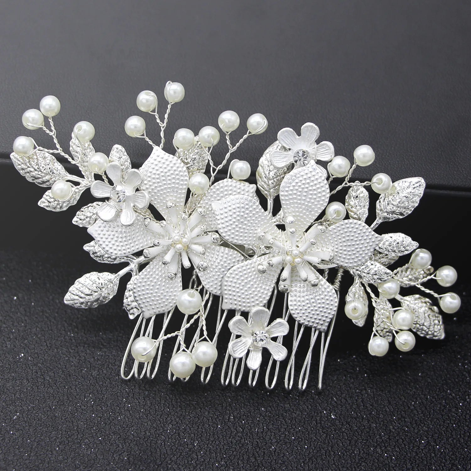 plus Luxury Bride Pearl Aolly Flower Hair Comb Crystal Hairpin Women's Wedding Hairwear Wedding Party Jewelry Hair Accessories