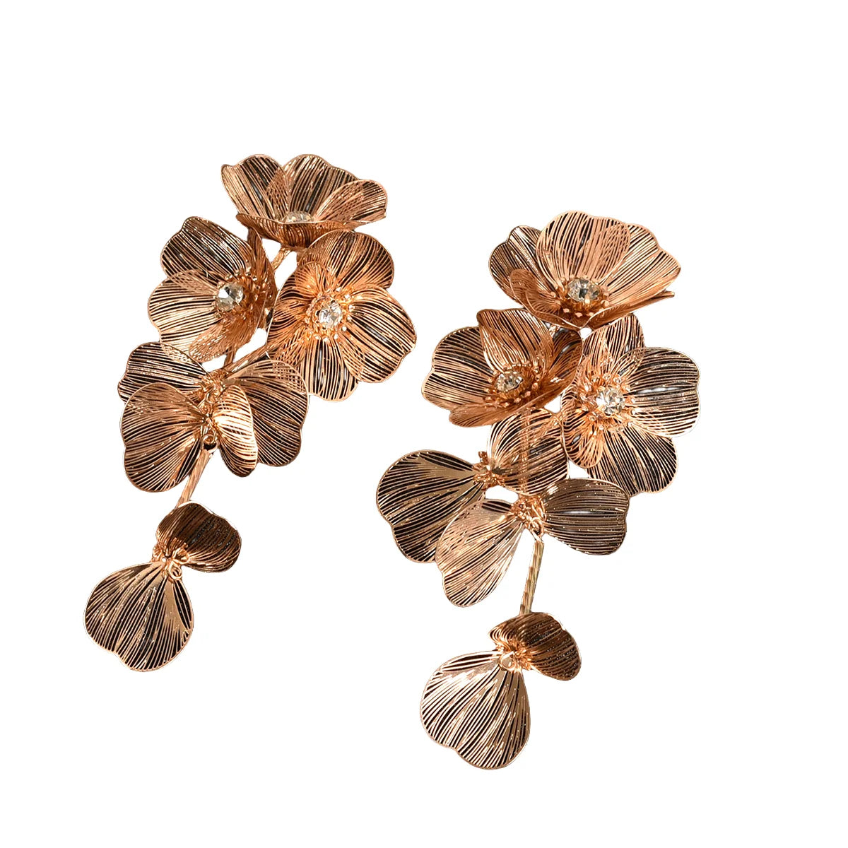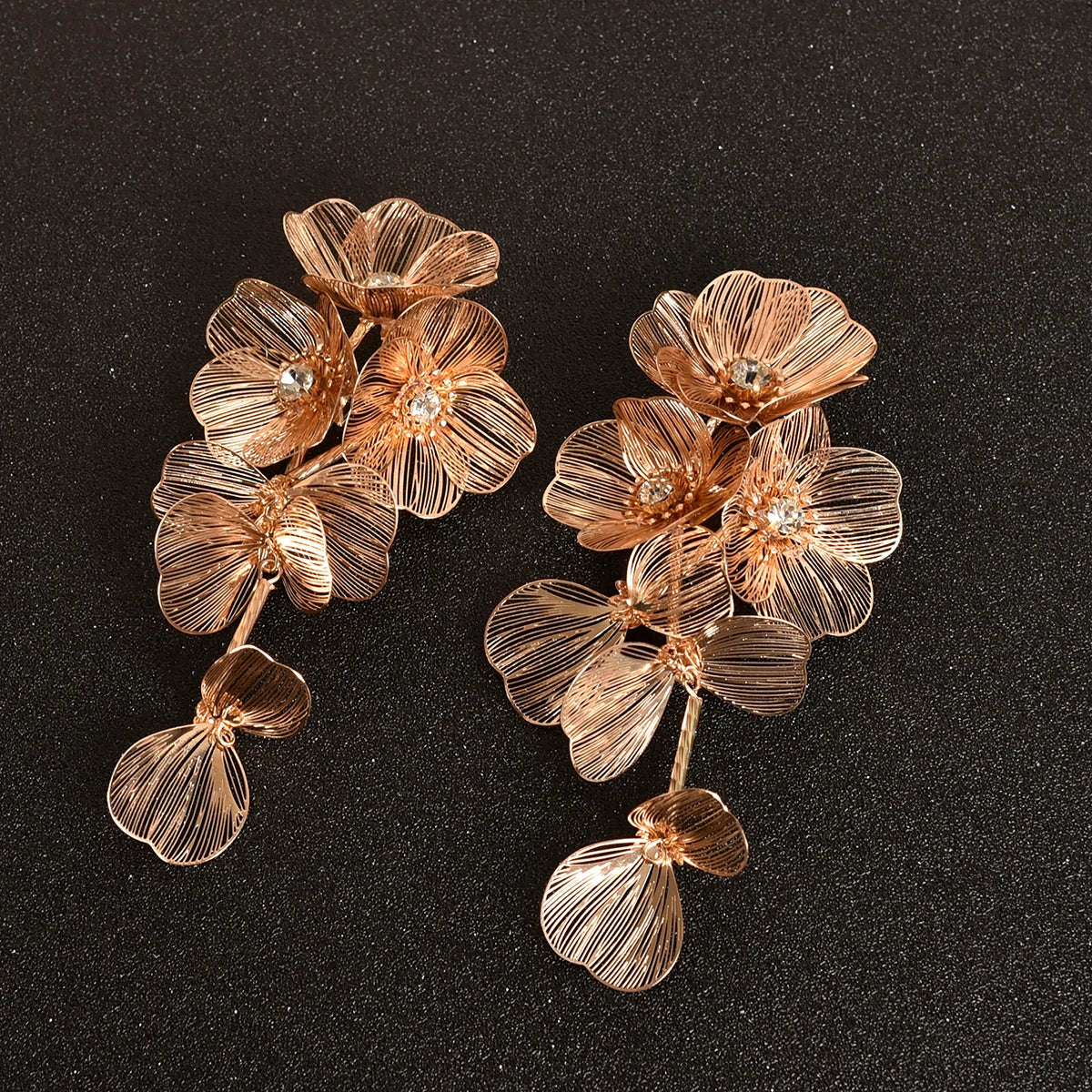 minus Luxury Golden Metallic Tassel Fishtail Flower Earrings Golden Earrings For Wedding Jewelry Korean Earrings Accessories