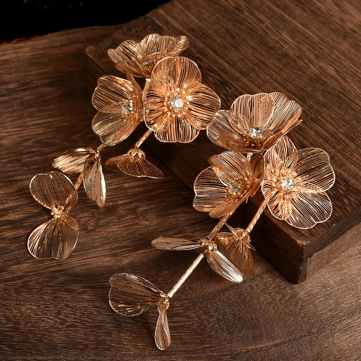 Luxury Golden Metallic Tassel Fishtail Flower Earrings Golden Earrings For Wedding Jewelry Korean Earrings Accessories