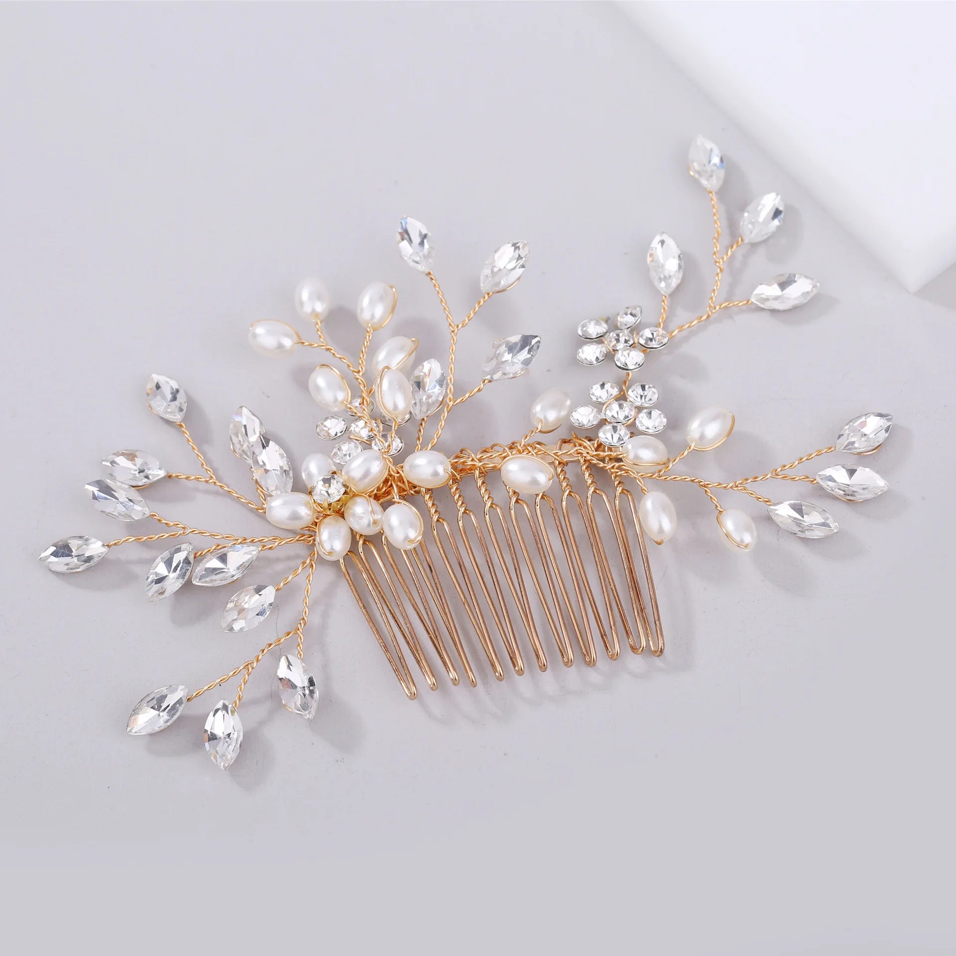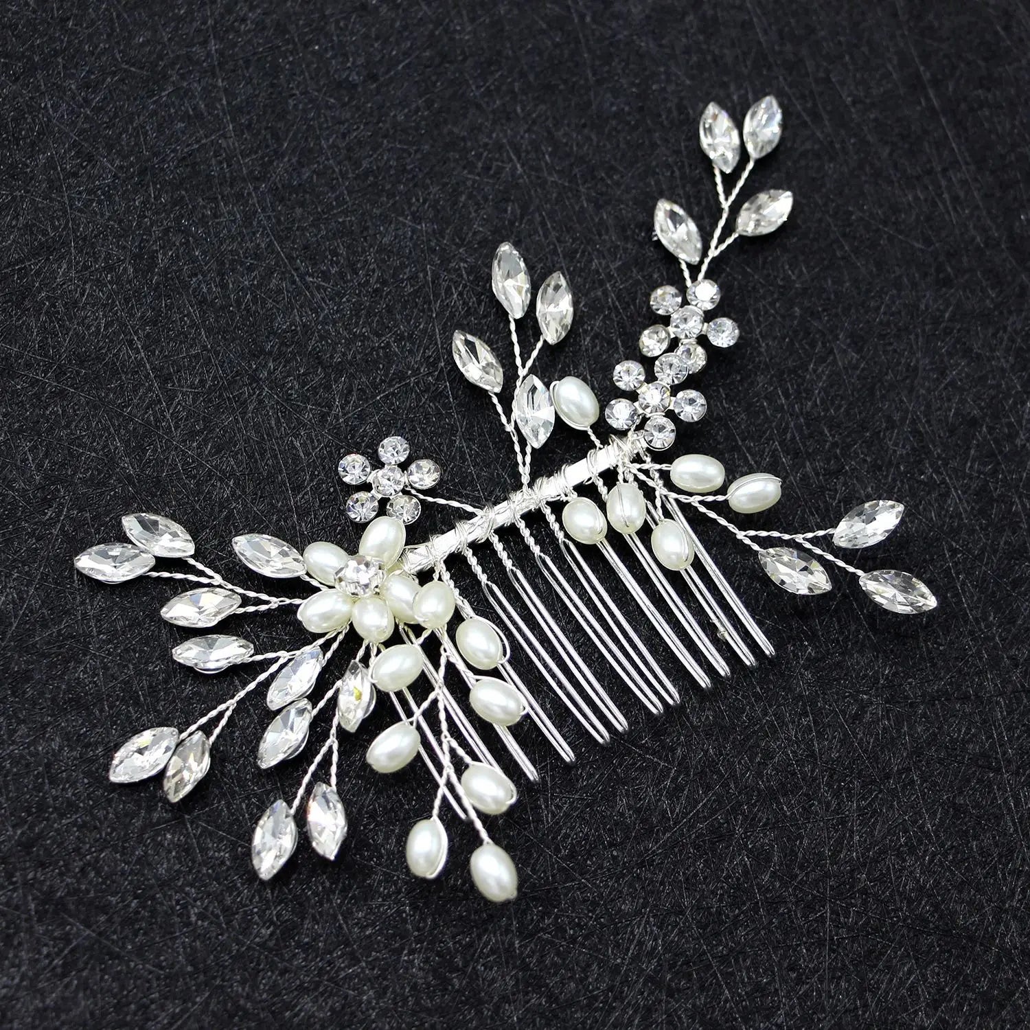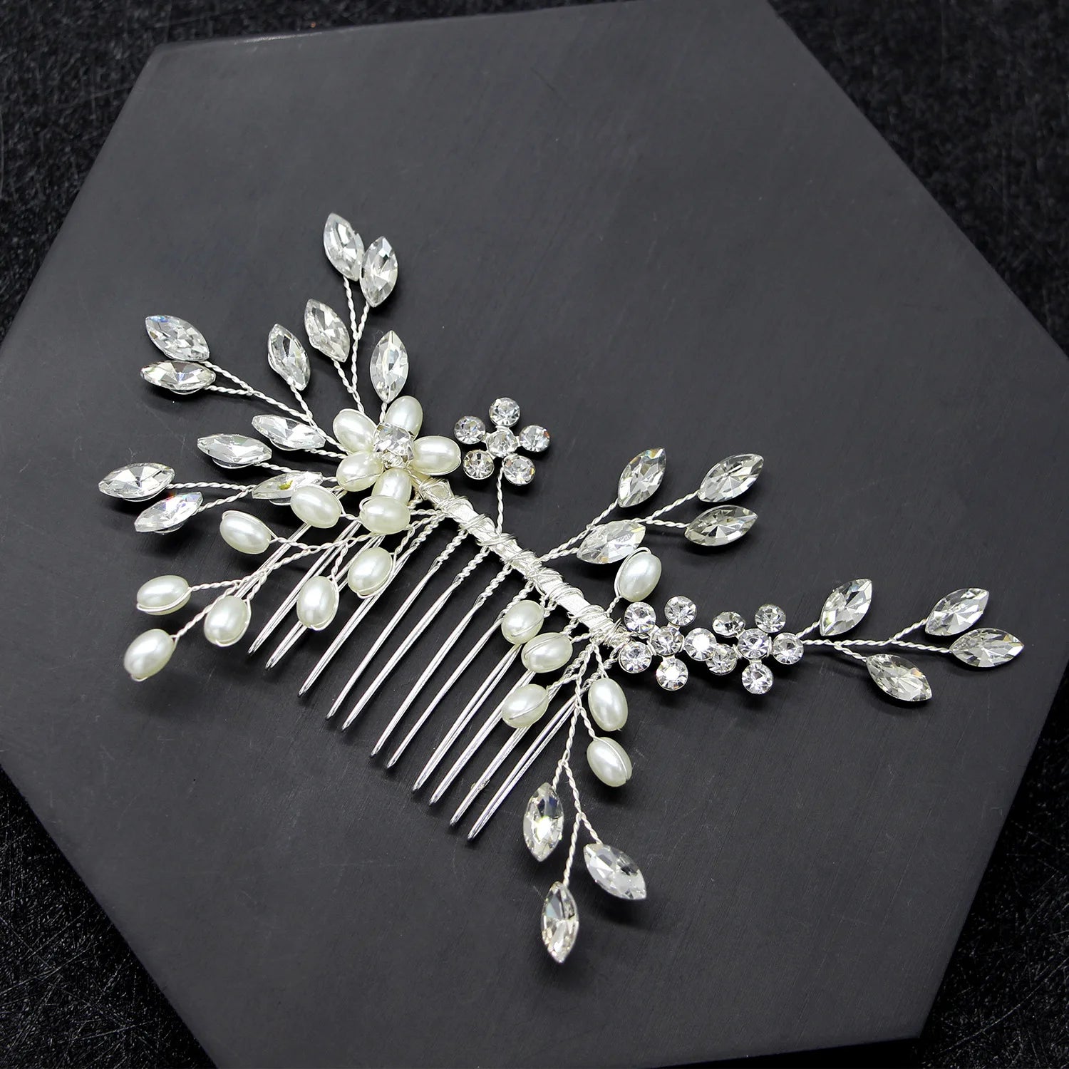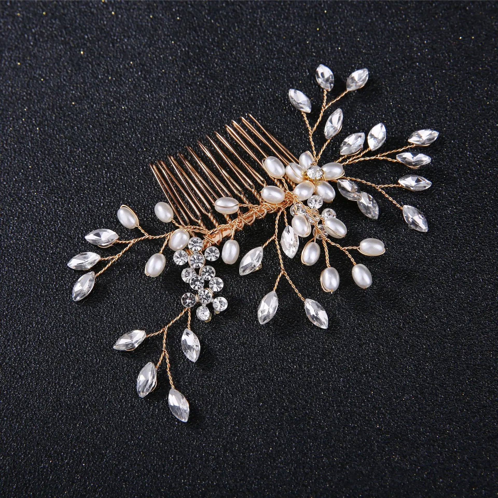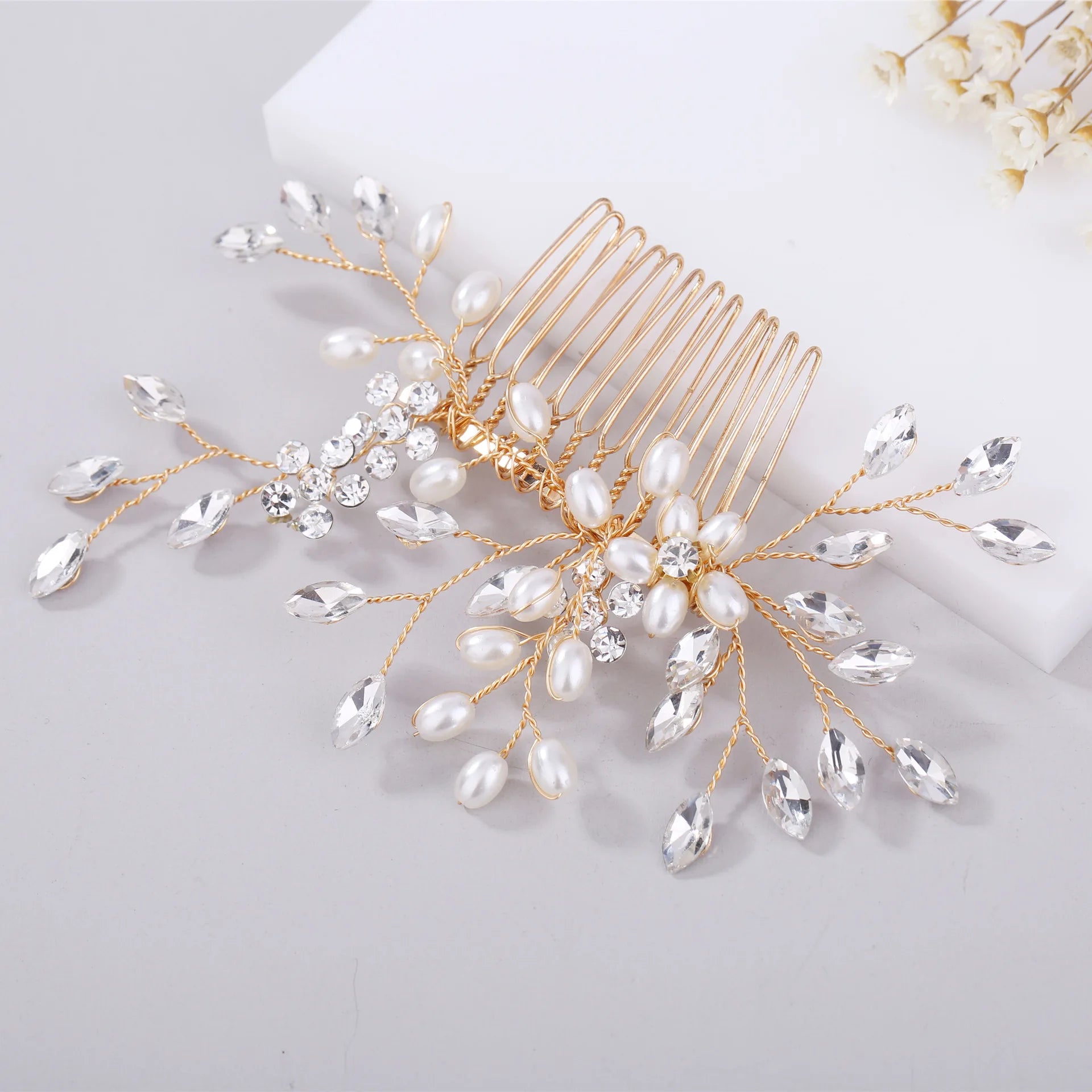 Luxury Women's Pearl Crystal Alloy Hair Comb Bridal Handmade Hair Accessories Jewelry Headdress