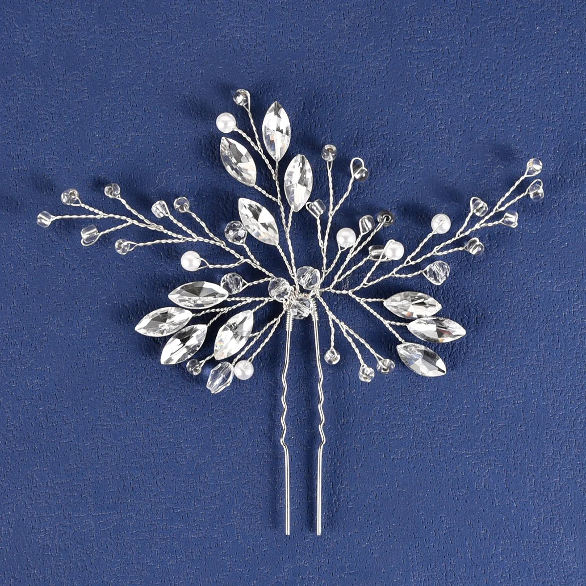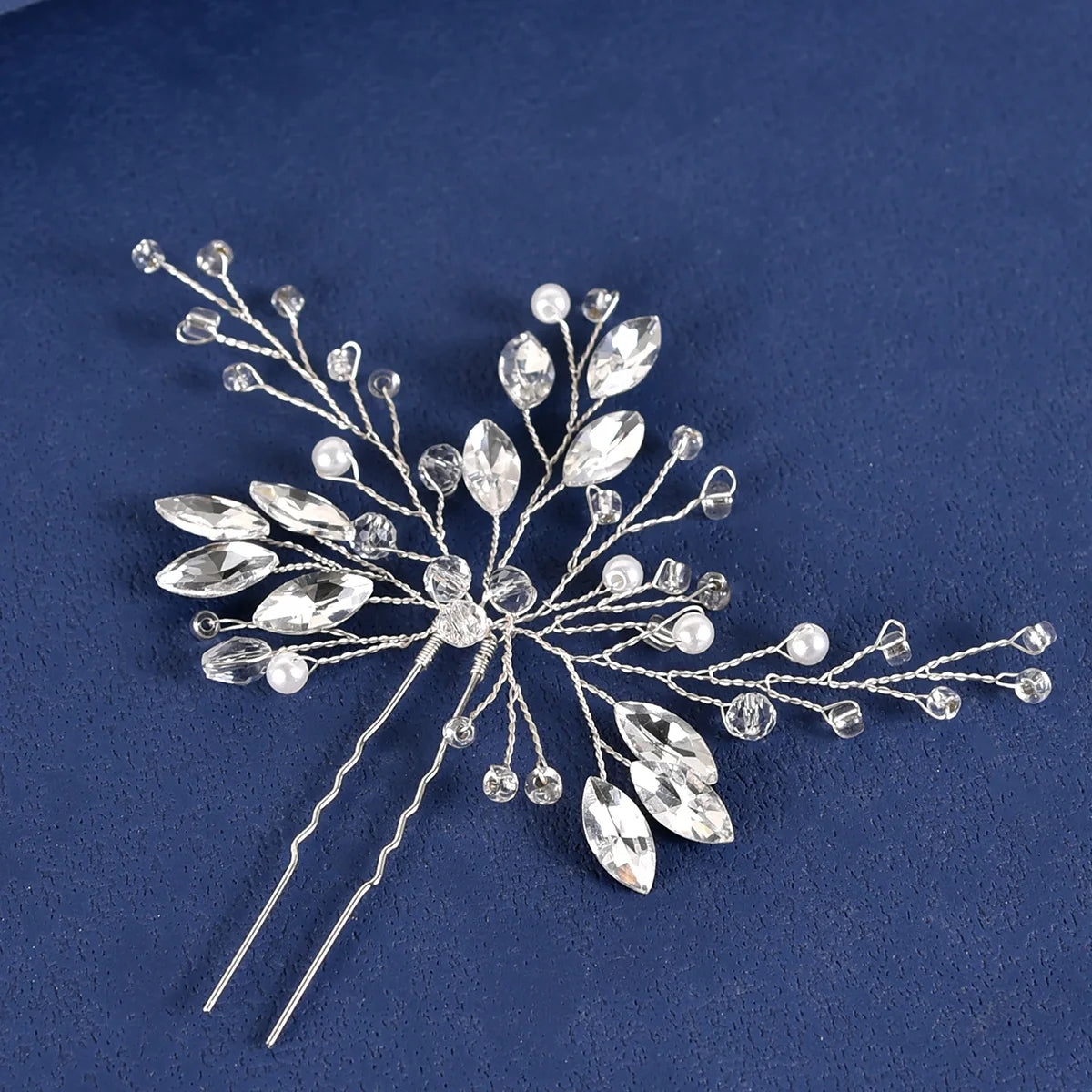 Silver Color Flower Pearl Crystal Wedding Hair Comb Hairpin Headband for Bride Women Hair Accessories Jewelry Tiara Gift