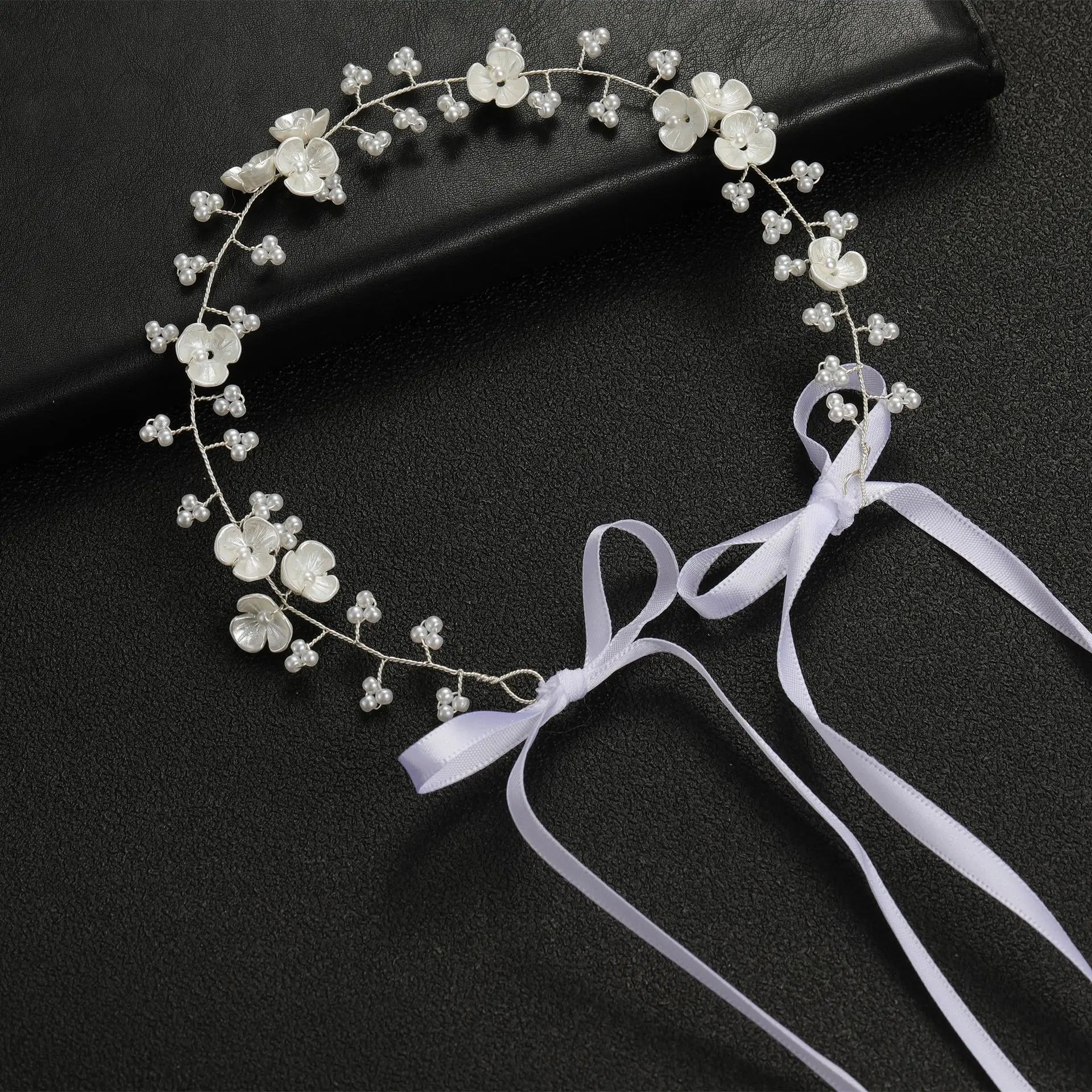Spring Bohemian Girls Bridal Pearl Hair Headdress Flower Wreath Bride Garland Head Hoop Headbands weddingJewelry Gifts