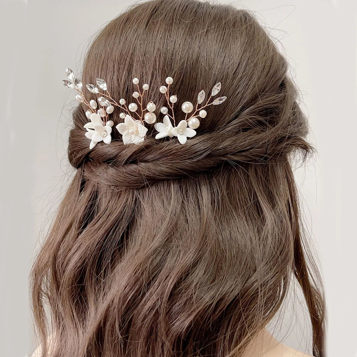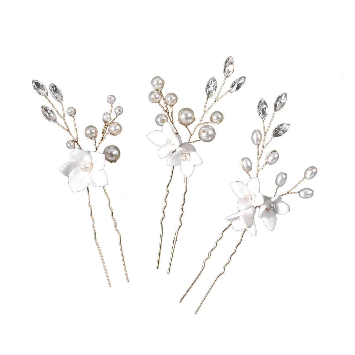 Three-piece U-shaped Pearl Flower Hairpin Ladies Bride Fashion Alloy hair accessories Wedding jewelry headpiece