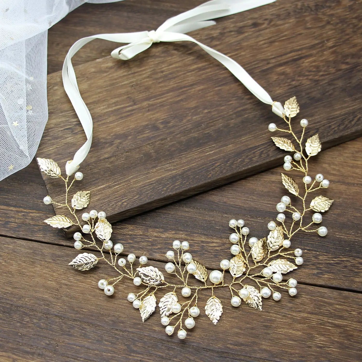Women Hairband Sliver Pearl Golden Leaf Bridal Hair Dress For Wedding jewelry Headwear Bridal Hair Accessories