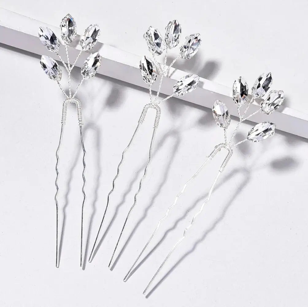 plus 3PCS Fashion Crystal Rhinestone Hairpins Stick Hair Clip for Women Bridal Hair Accessories Party Wedding Hair Clips Jewelry