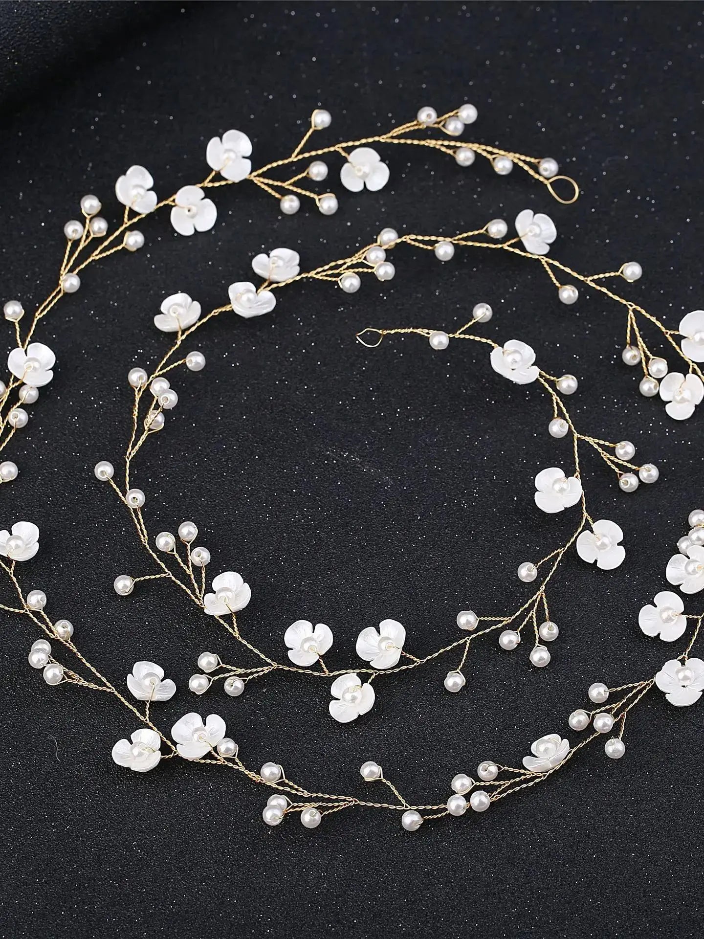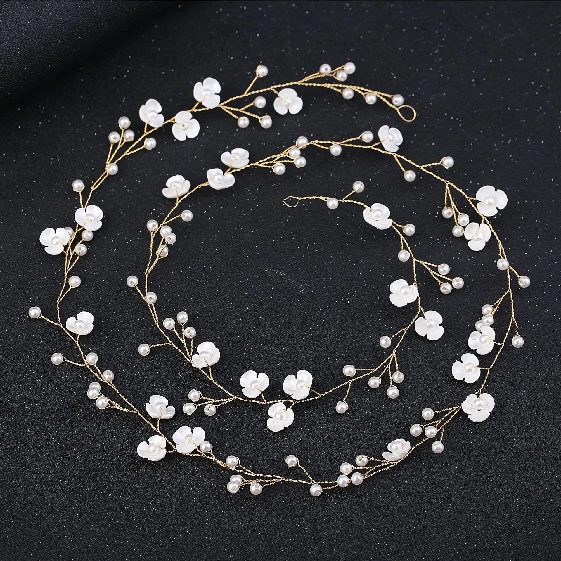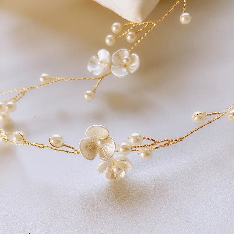 minus Beauty Bridal Hairband White Pear Flower Hiar Acceccories Gold Line Wedding Headpieces Women Jewelry Handmade Headdress