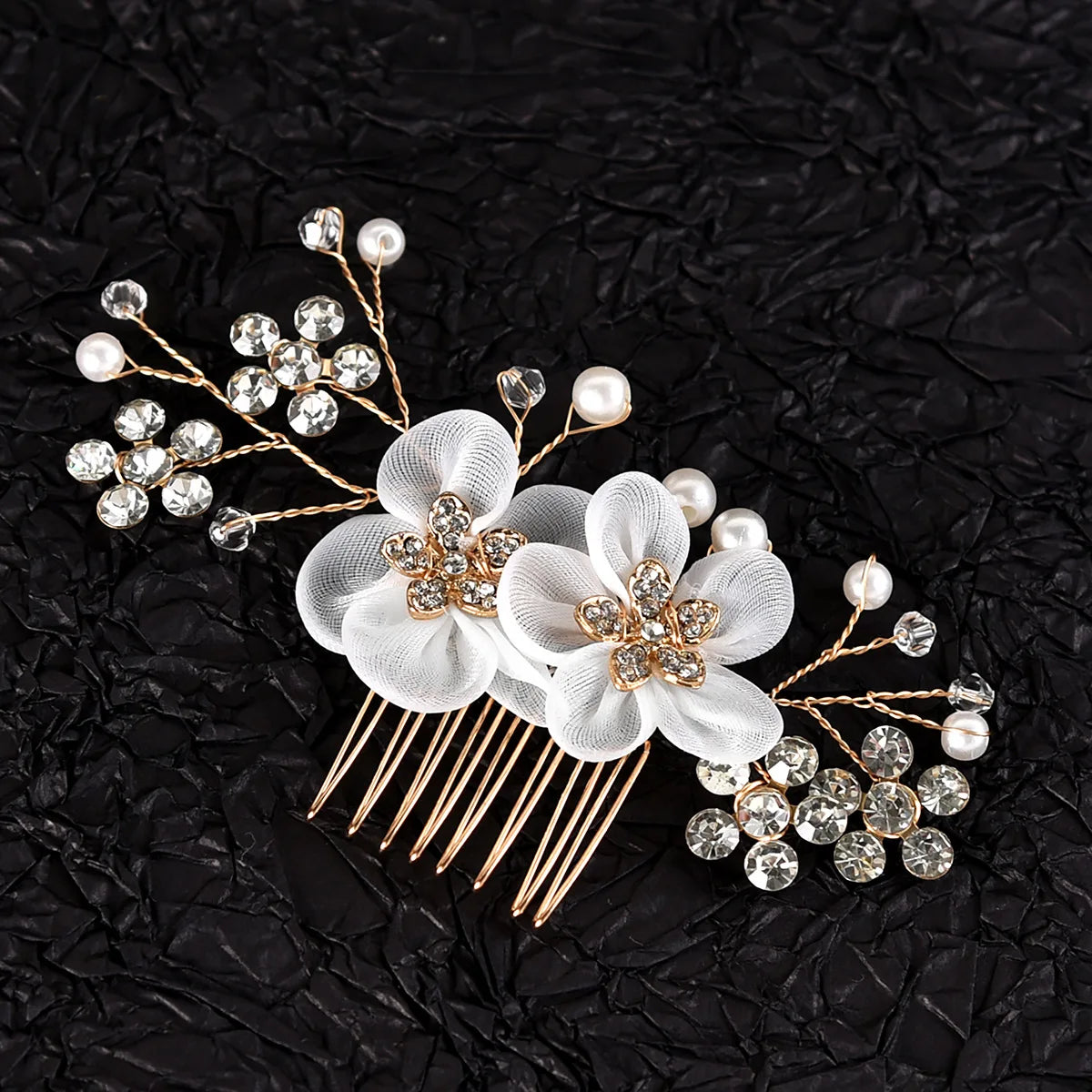 Crystal Pearl Flower Hairbrush for Women Bride Jewelry Wedding Accessories Rhinestone Party Hairpin Headpiece