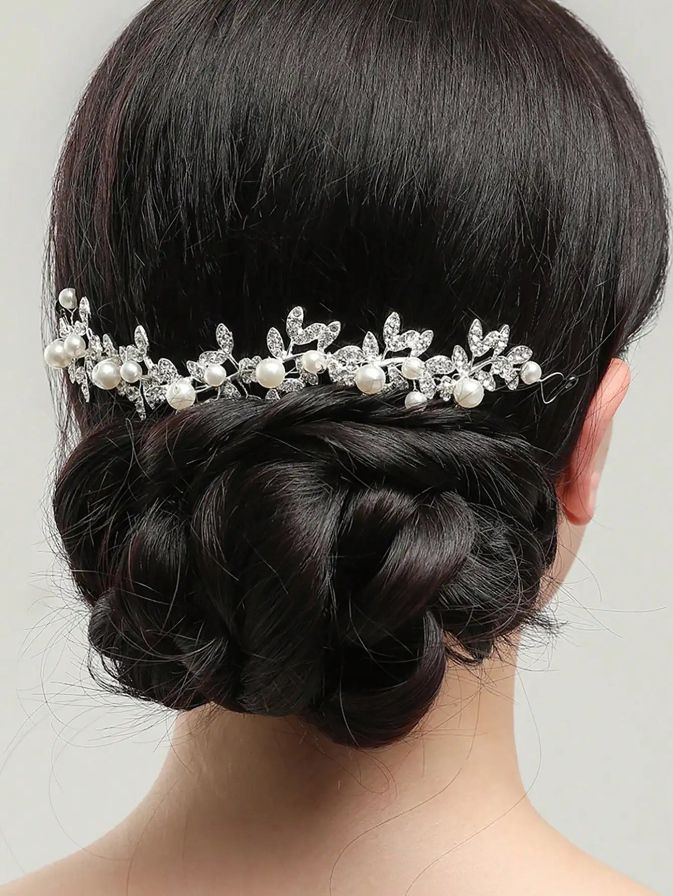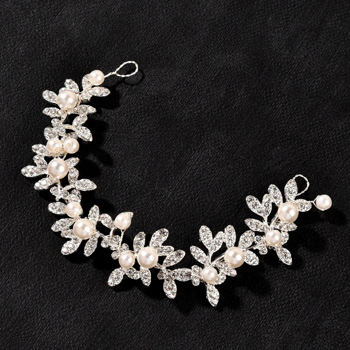 plus Fashion Handmade Pearl Crystal Flower Bridal Hairband Sliver Headwear Wedding Hair Accessories Handmade Flower Pearl