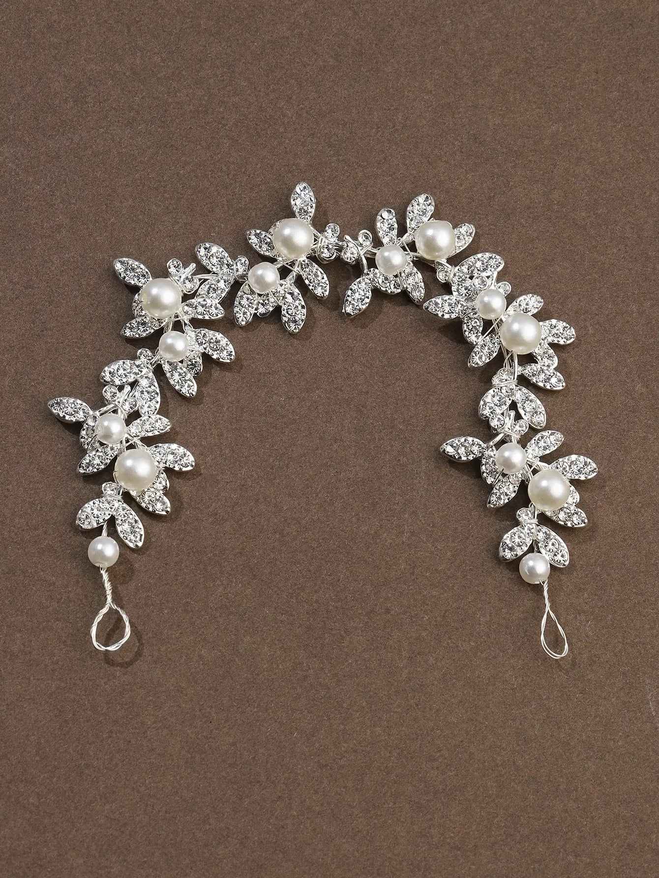 minus Fashion Handmade Pearl Crystal Flower Bridal Hairband Sliver Headwear Wedding Hair Accessories Handmade Flower Pearl