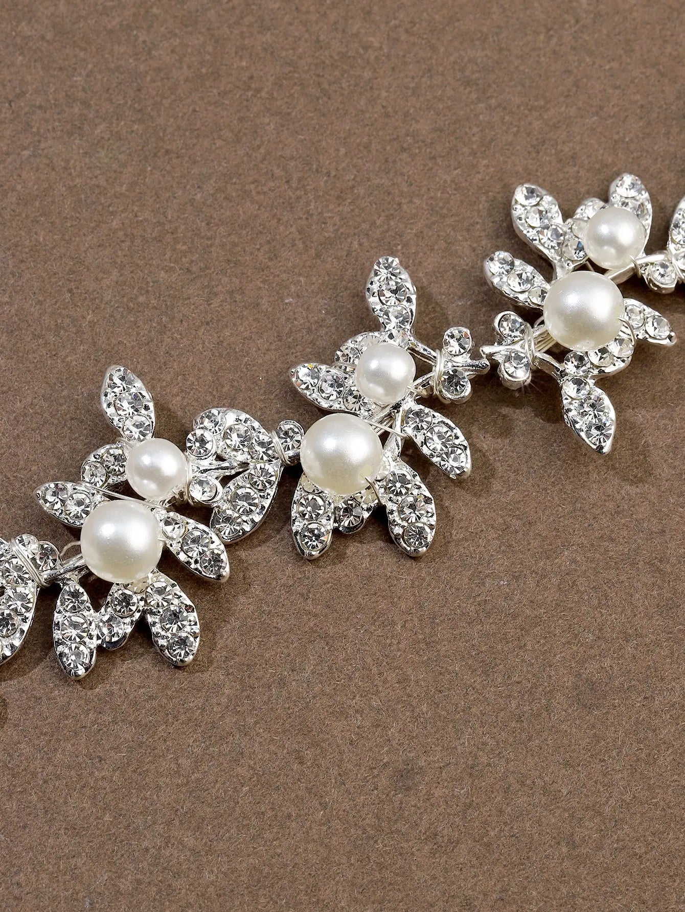 Fashion Handmade Pearl Crystal Flower Bridal Hairband Sliver Headwear Wedding Hair Accessories Handmade Flower Pearl
