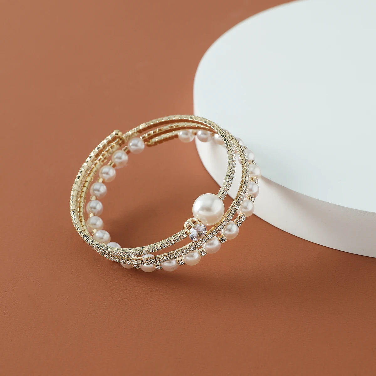 plus Luxury Bridal Cuff Bracelet 3 Row Rhinestone Pearl Bracelet For Women Wedding Party Jewelry Hand Accessories Gifts For Girls