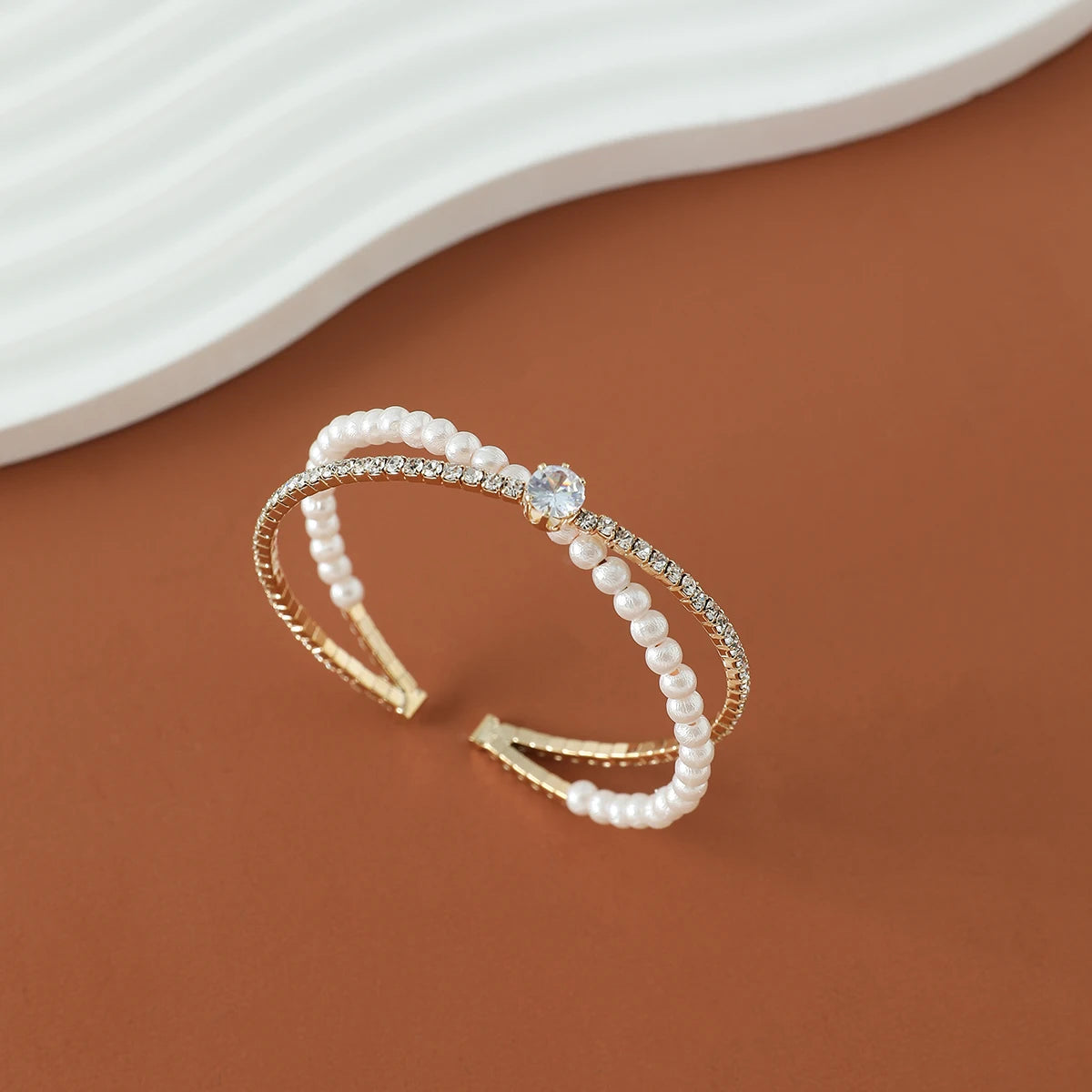 minus Luxury Bridal Cuff Bracelet X Shape Rhinestone Pearl Bracelet For Women Wedding Party Jewelry Hand Accessories Gifts For Girls