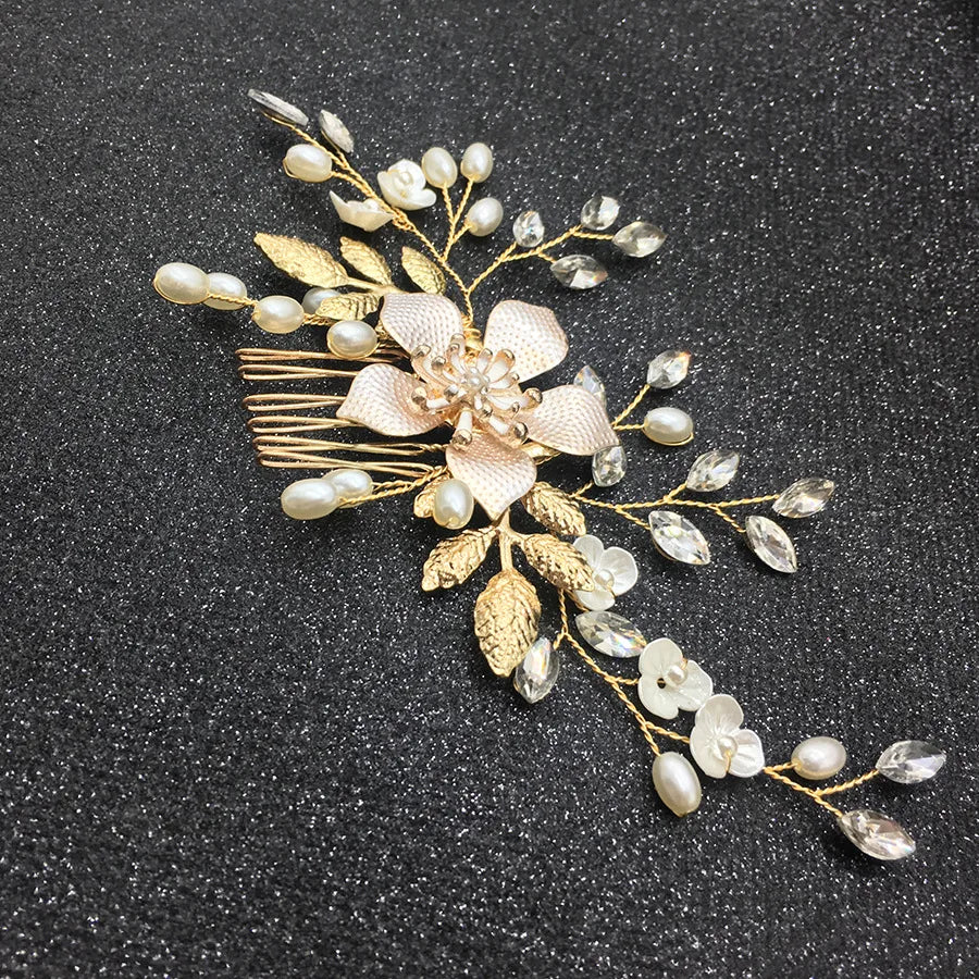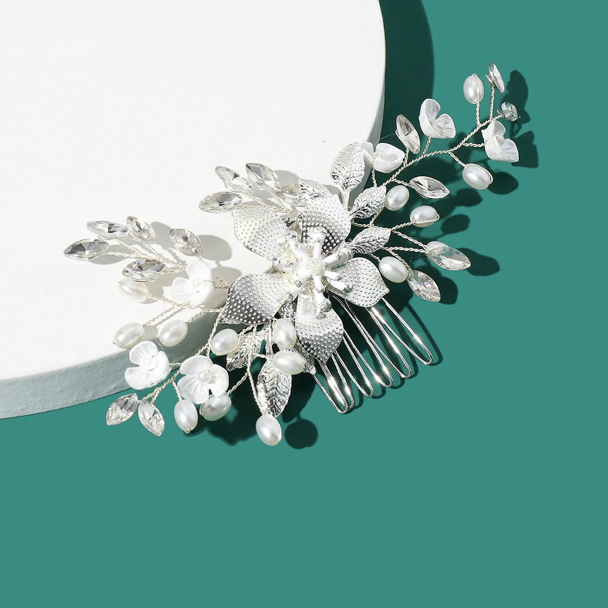 Luxury Bride Pearl Aolly Flower Hair Comb Crystal Hairpin Women's Wedding Hairwear Wedding Party Jewelry Hair Accessories