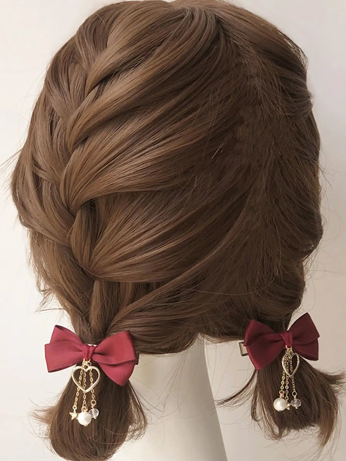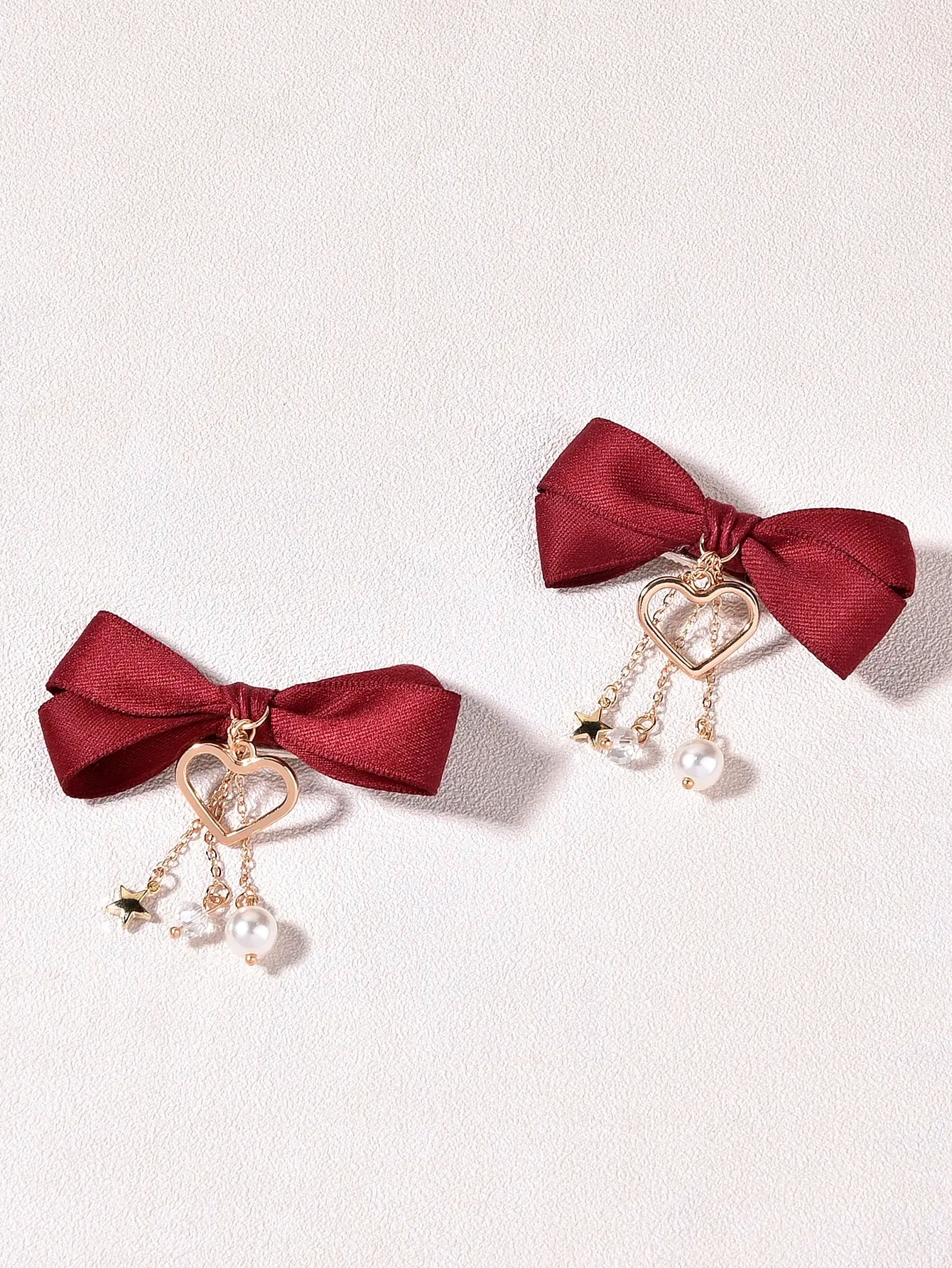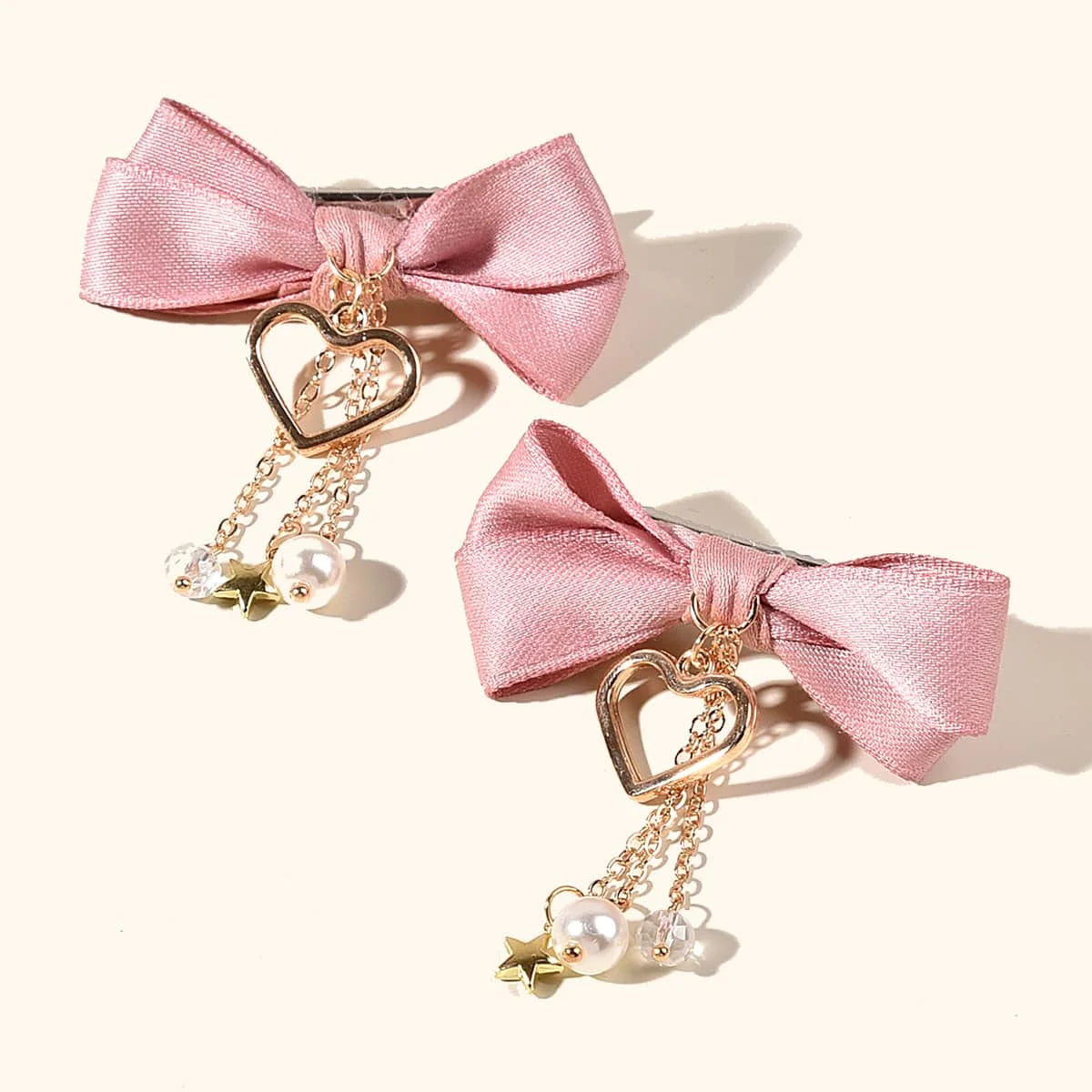 minus Fashion 2 Pcs Bow Tie Hairpin For Girl With Metal Heart and Golden Pearl Baby and Lady Silk Hair Headpiece For Daily Dressing